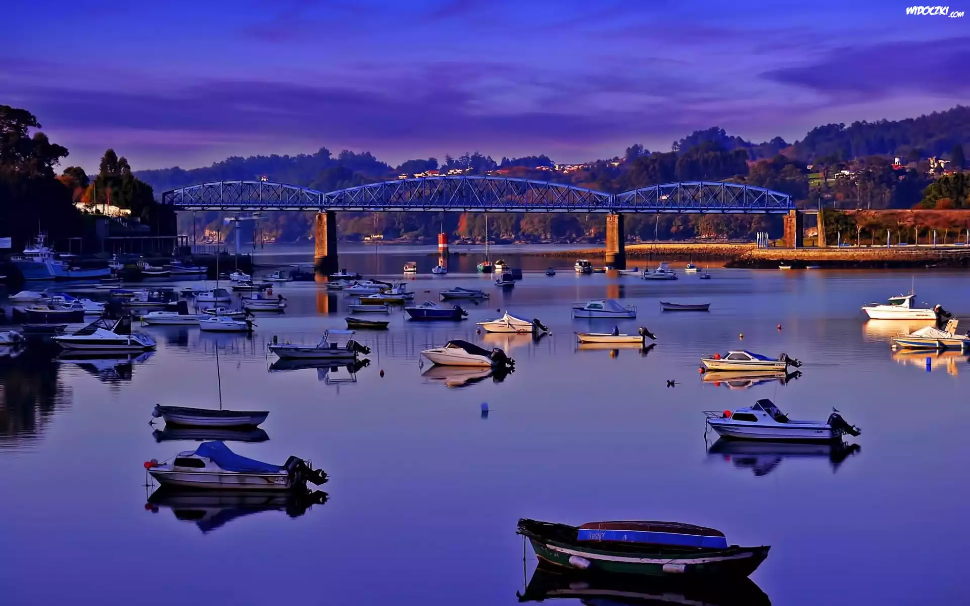 Zdjęcia, Rzeka, Most, Łodzie, Motorówki, Lasy