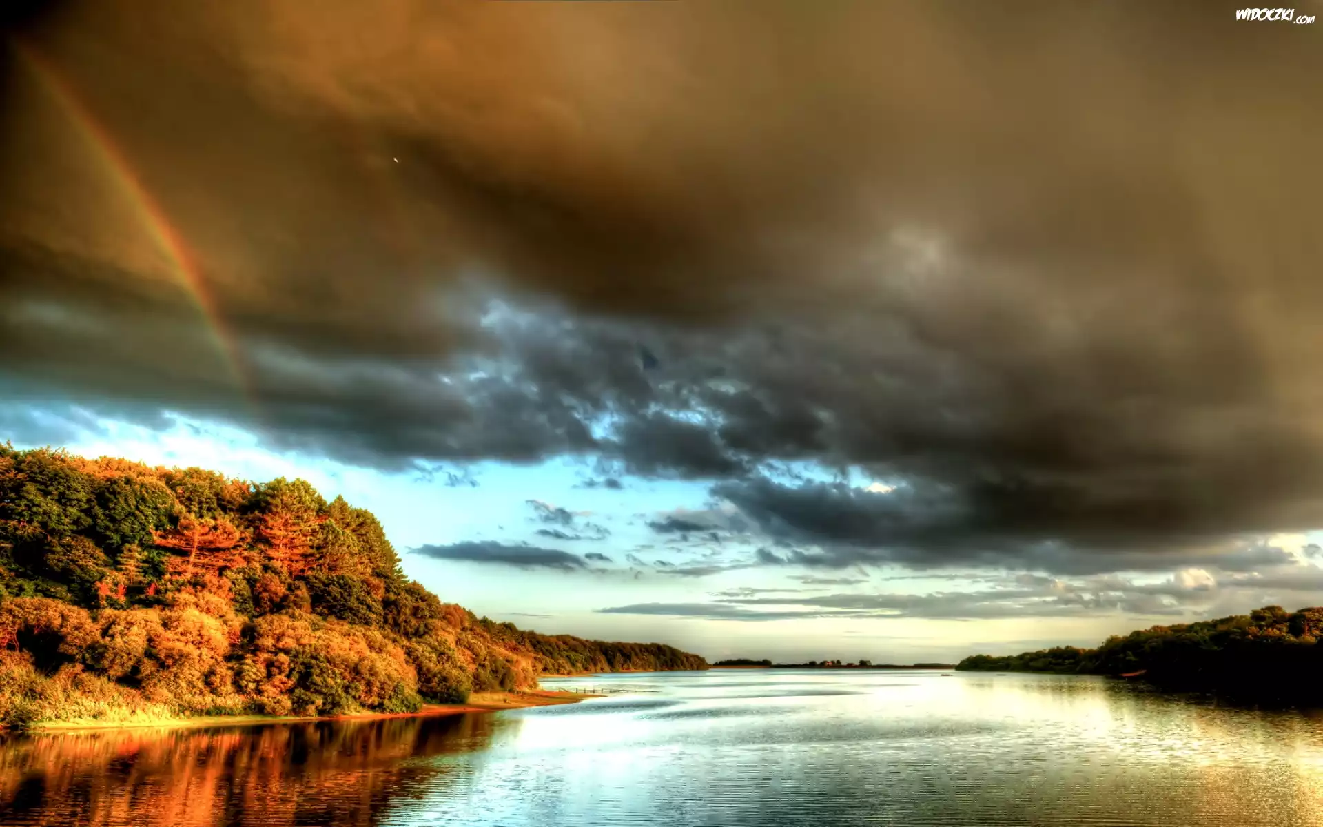 Zdjęcia, Rzeka, Tęcza, Niebo, Wybrzeże