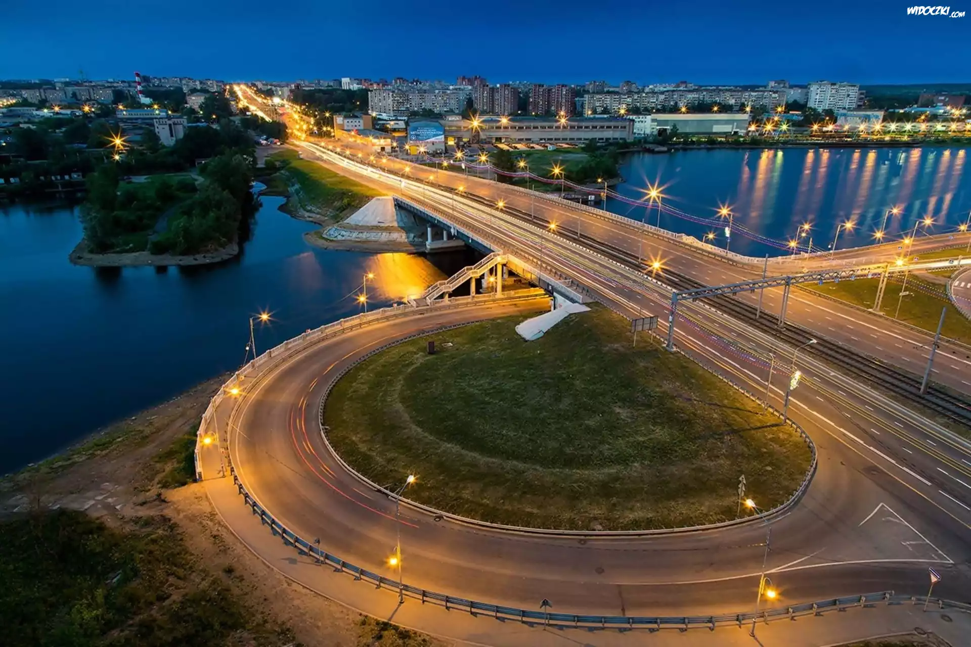 Zdjęcia, Rzeka, Most, Miasto, Nocą, Droga