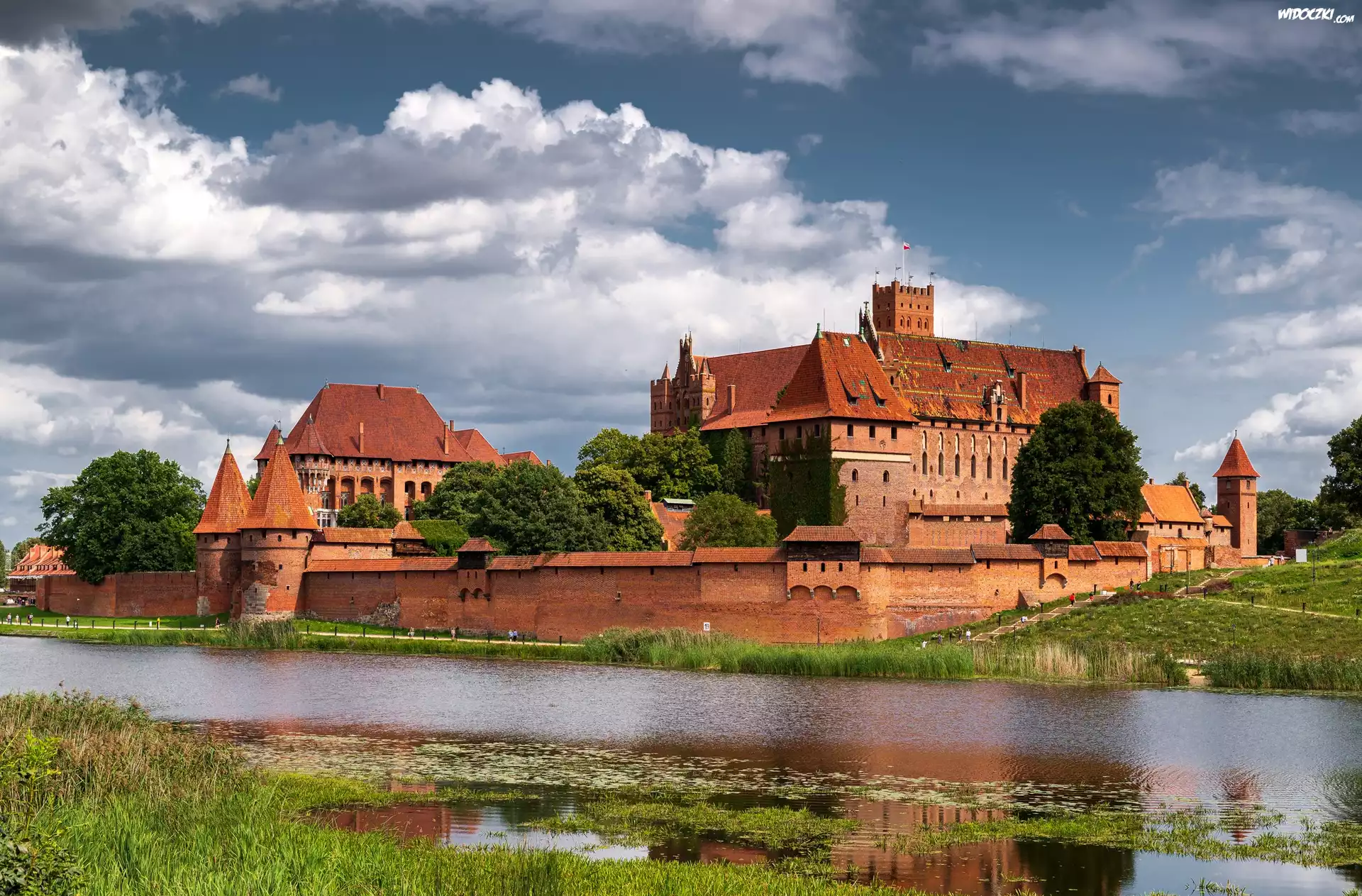 Zamek w Malborku, Zamek Krzyżacki, Zabytek, Rzeka Nogat, Odbicie, Malbork, Polska