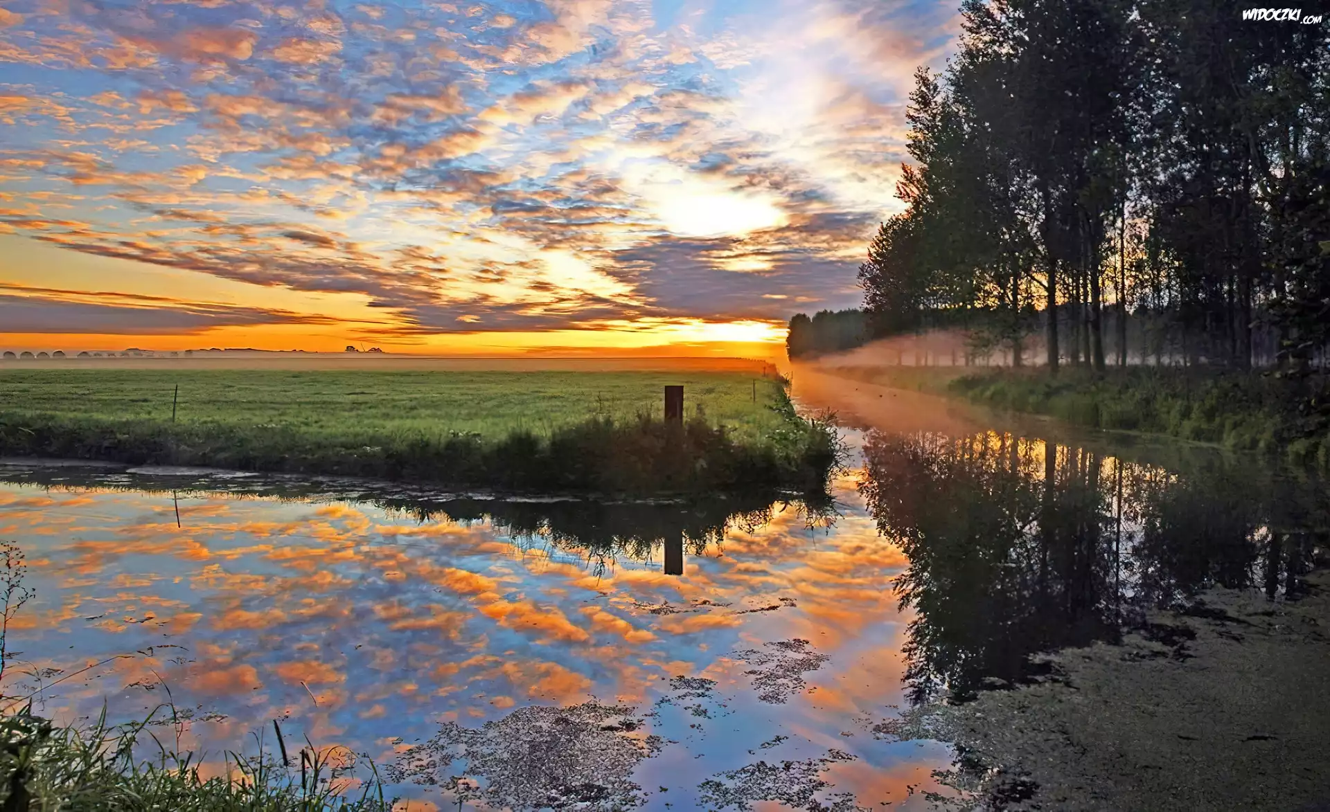 Zdj臋cia, Rzeka, Chmury, Odbicie, Poranek
