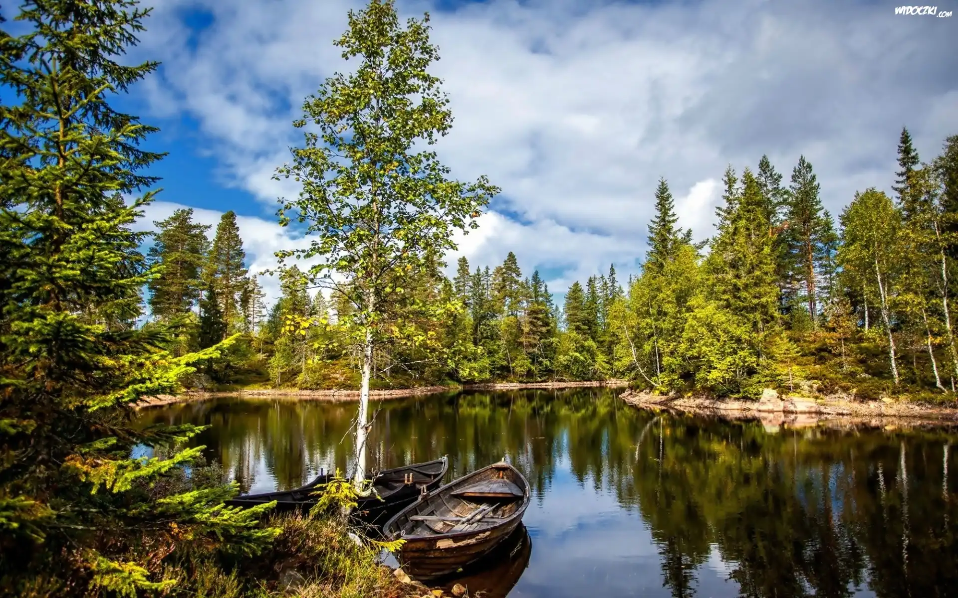 Zdjęcia, Rzeka, Las, Łódki, Jesień