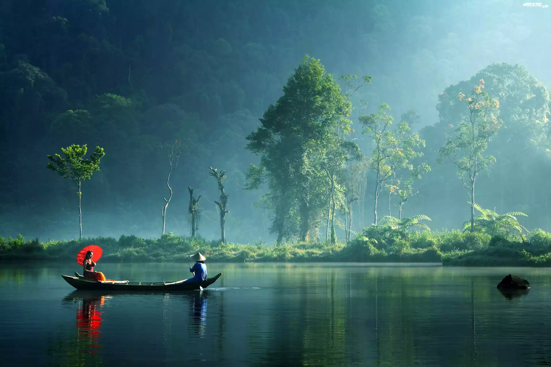 Zdjęcia, Łódź, Rzeka, Drzewa