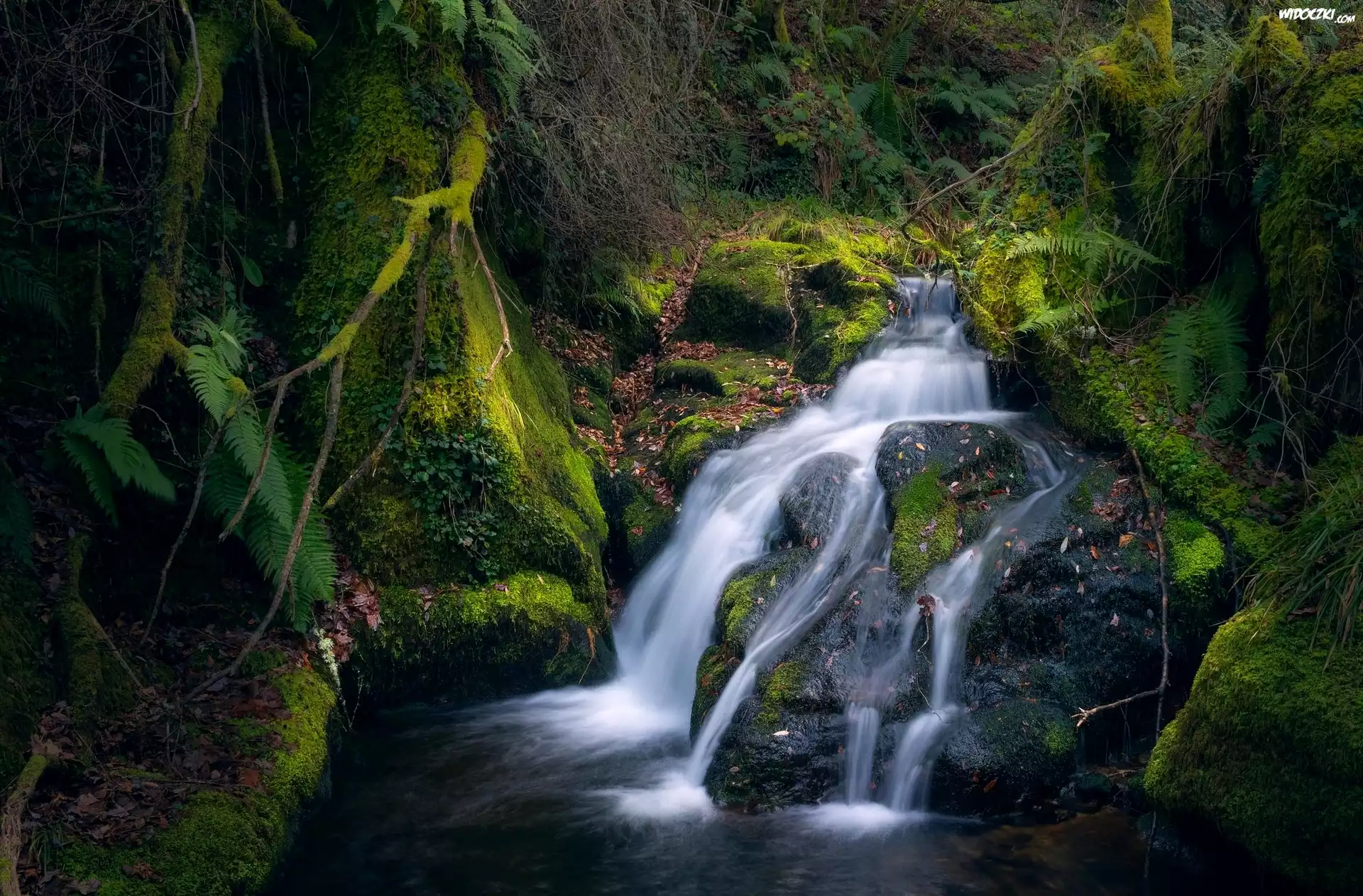 Zdjęcia, Rzeka, Strumień, Rośliny, Omszałe, Kamienie