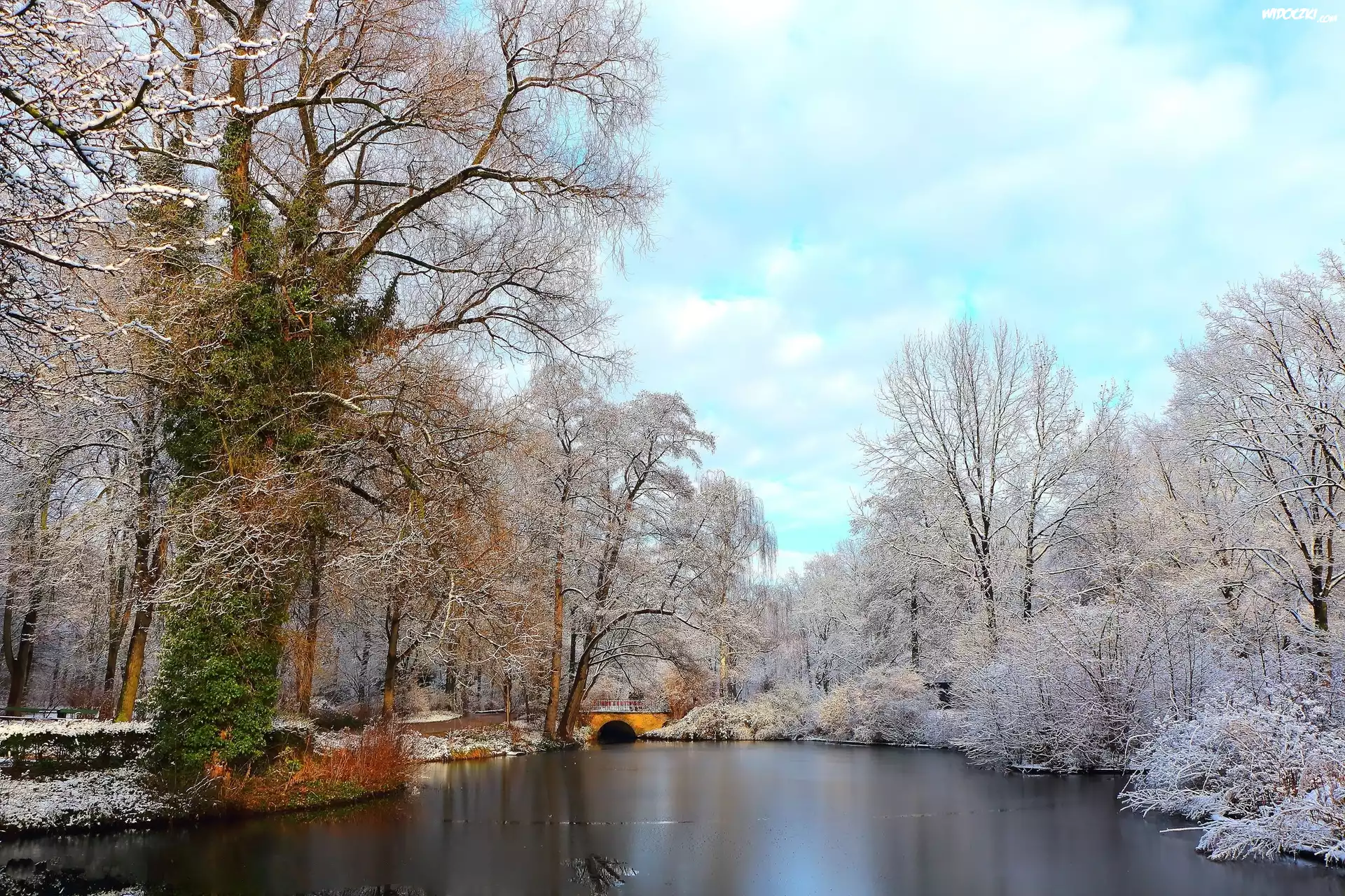 Zdjęcia, Rzeka, Zima, Ośnieżone, Drzewa