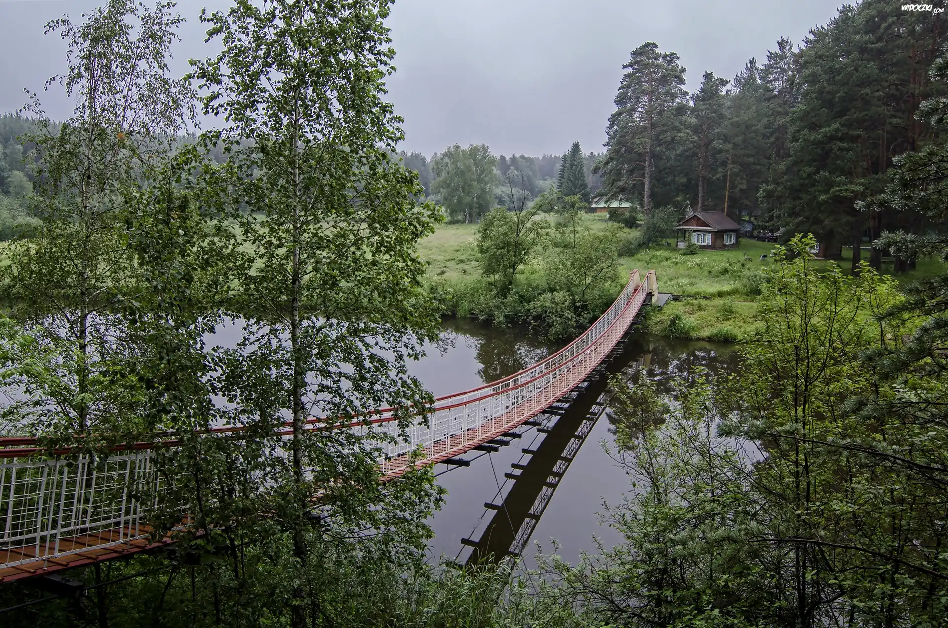 Zdjęcia, Rzeka, Podwieszany, Most, Domki, Ośrodek, Wypoczynkowy