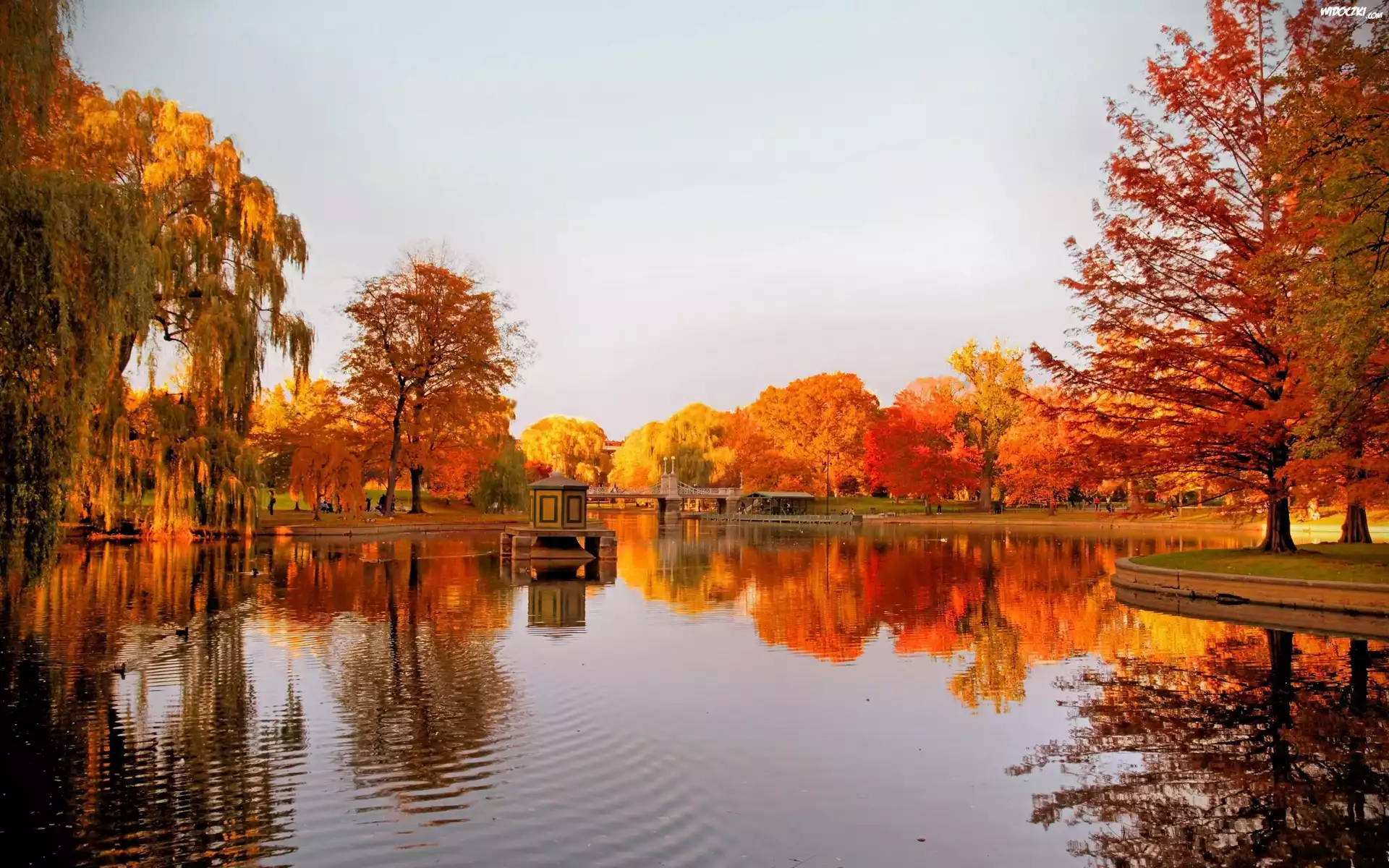 Zdjęcia, Rzeka, Most, Park, Jesień