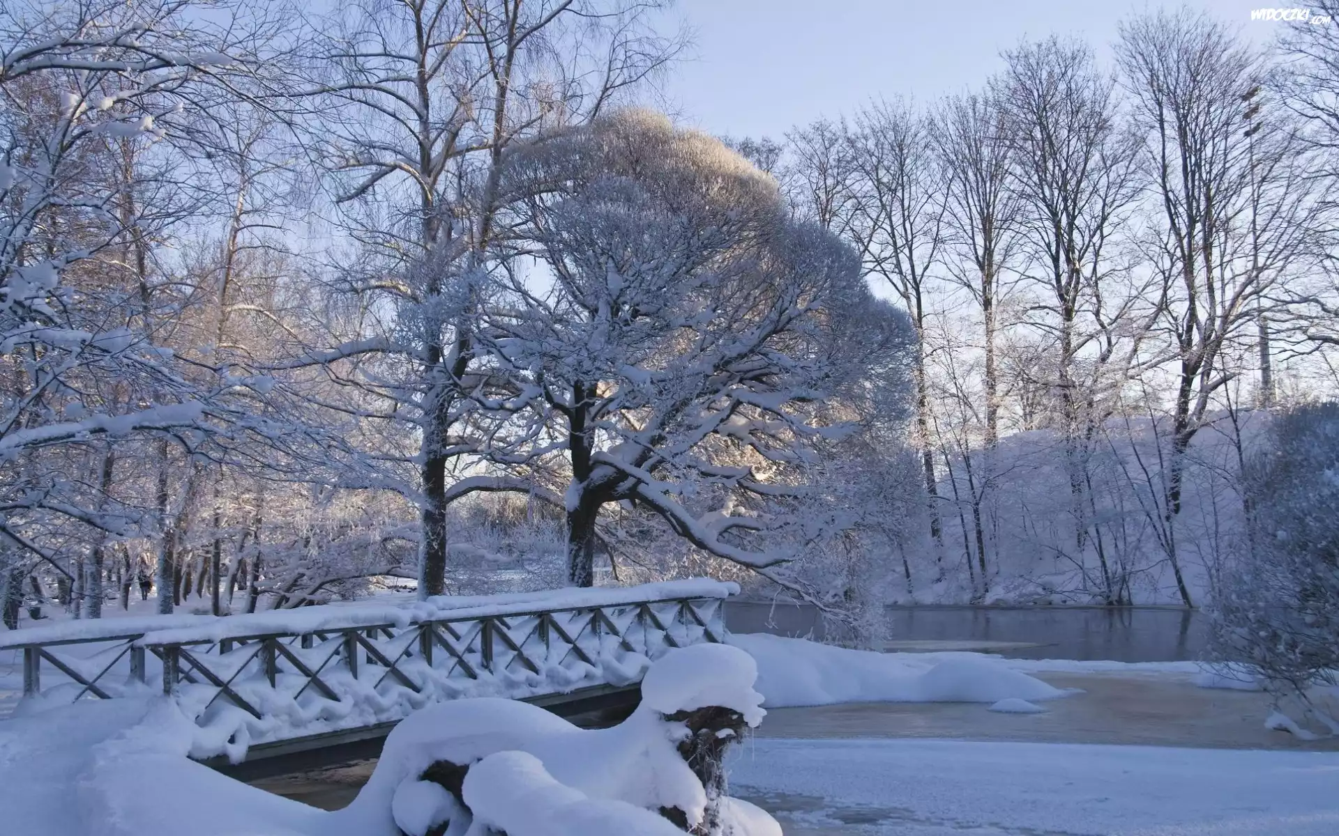 Zdjęcia, Rzeka, Mostek, Park, Zima