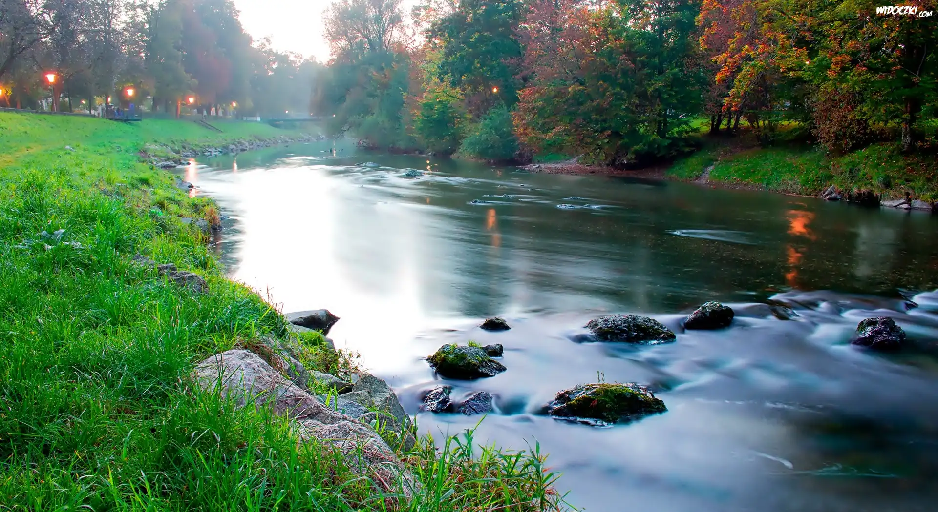 Zdjęcia, Park, Rzeka, Oświetlenie