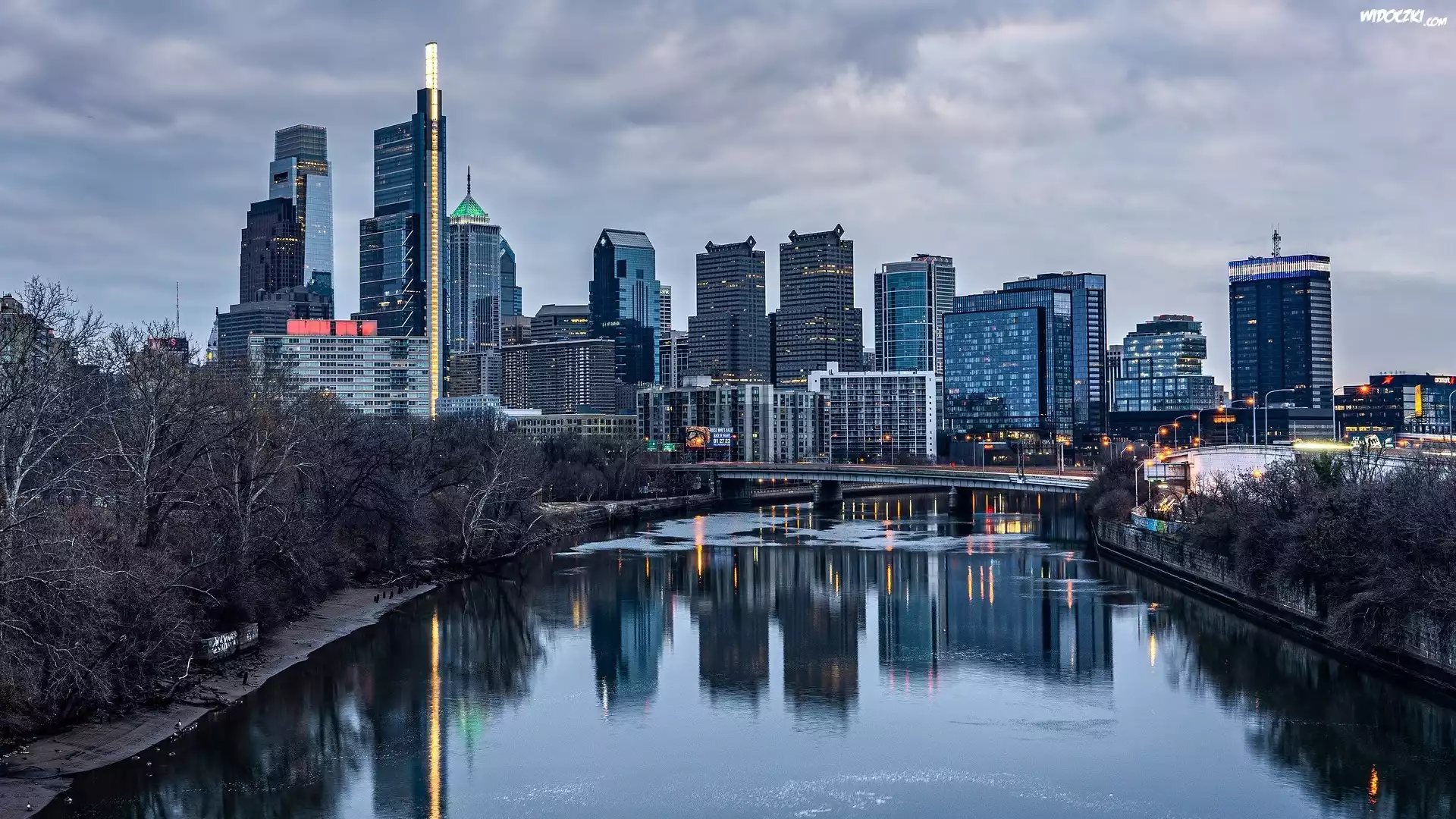 Zdj臋cia, Rzeka, Schuylkill River, Domy, Krzewy, Filadelfia, Pensylwania, Stany Zjednoczone