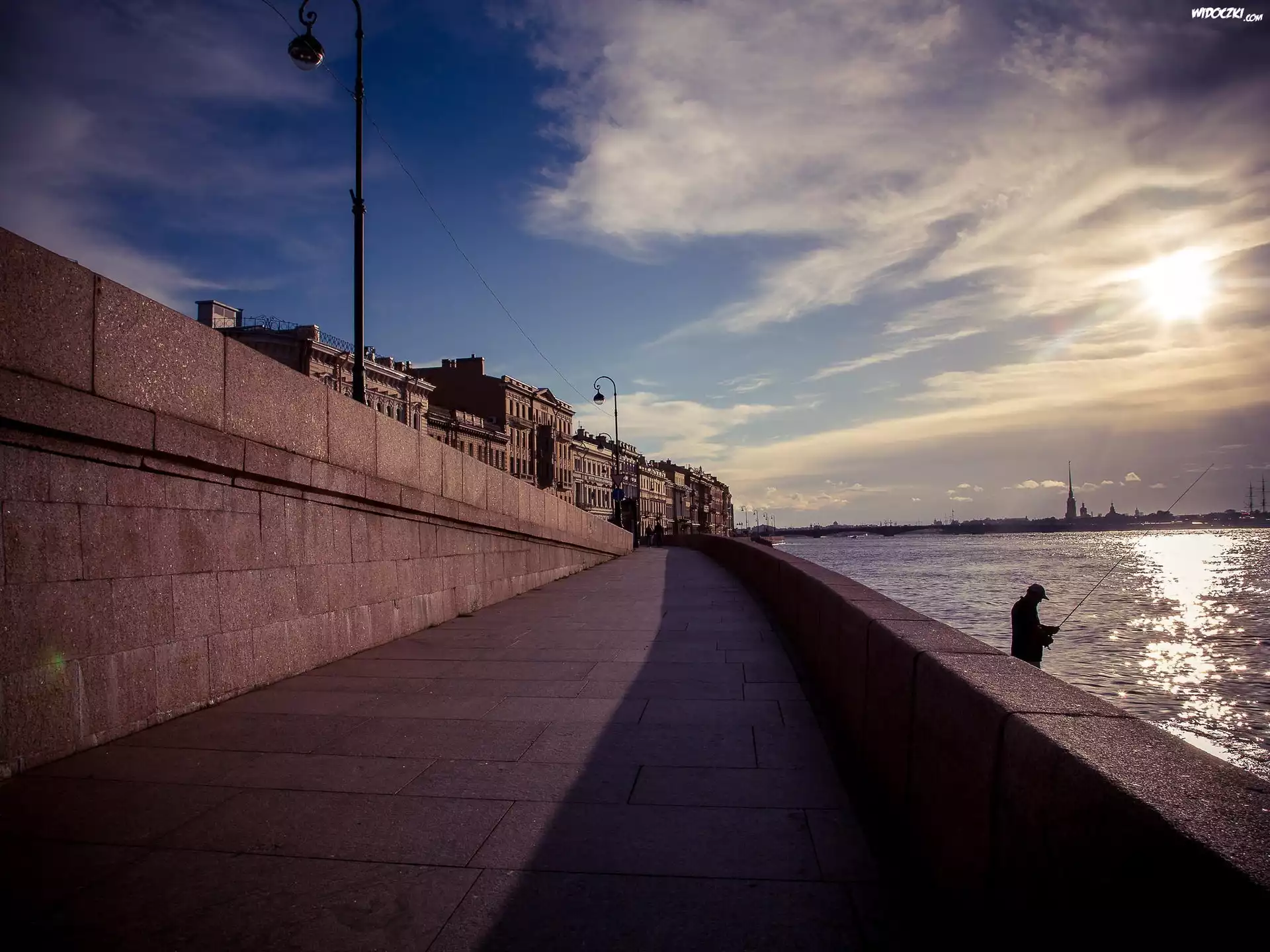Zdjęcia, Petersburg, Rzeka, Wędkarz