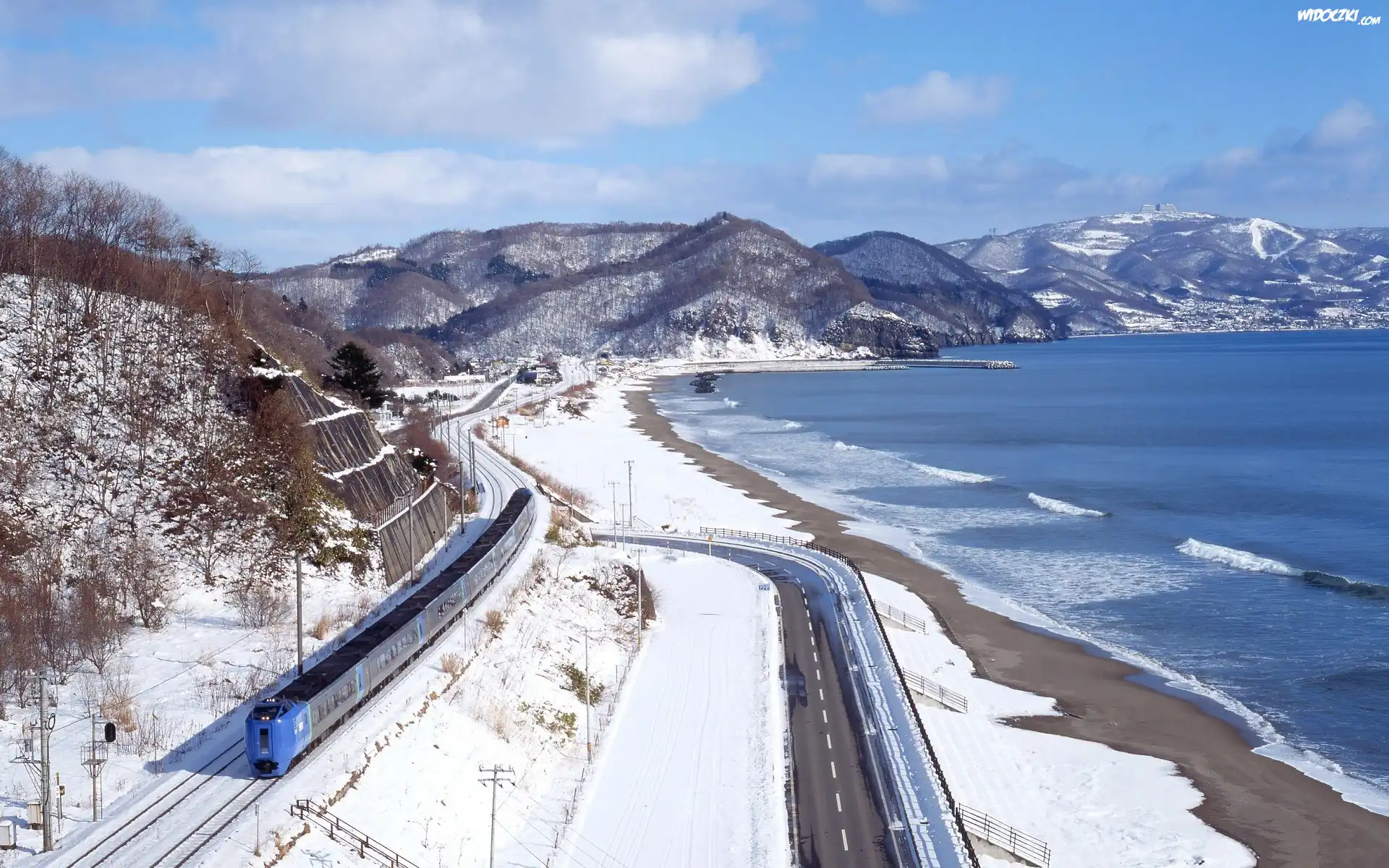 Zdjęcia, Rzeka, Góry, Droga, Pociąg, Zima