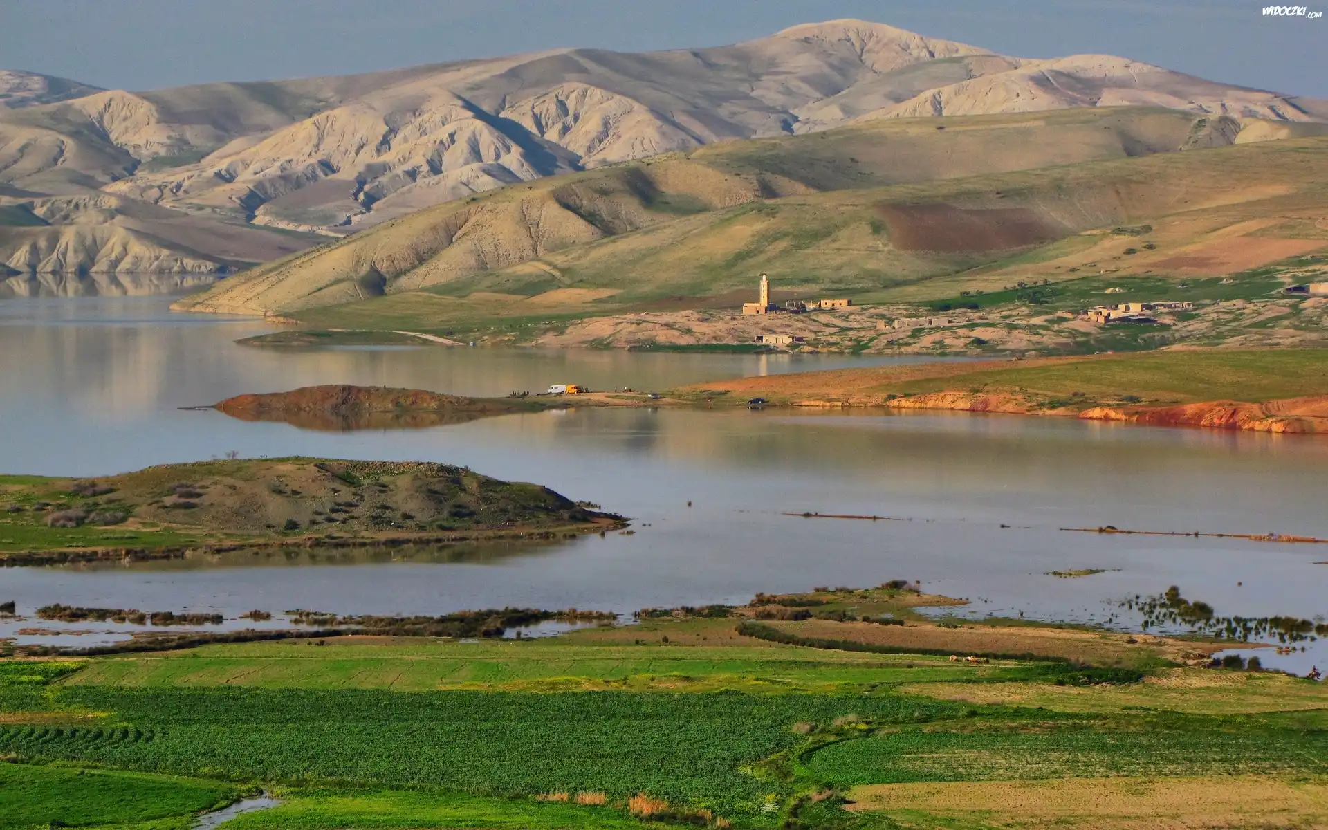 Zdjęcia, Rzeka, Góry, Pola, Domy