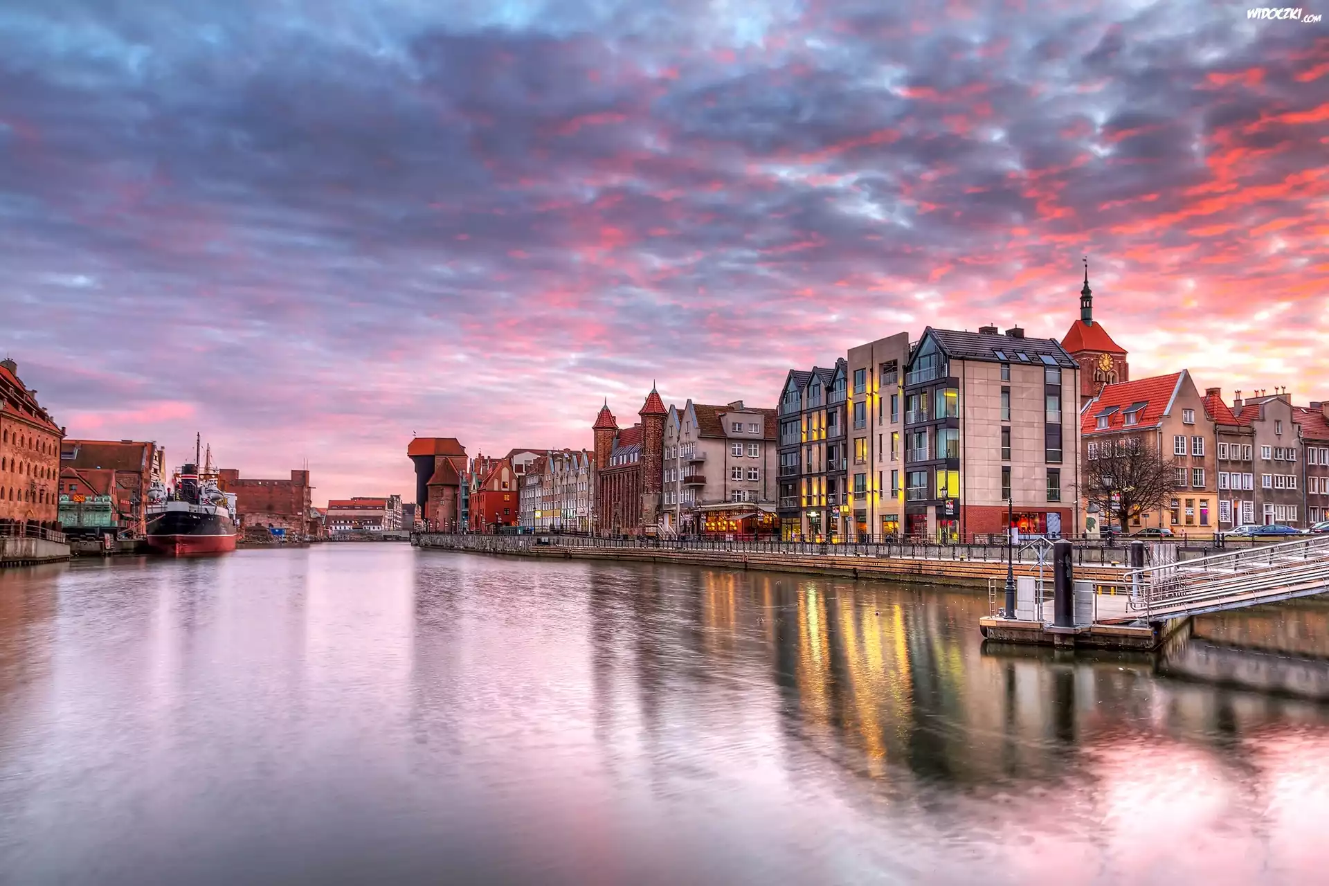 Zdjęcia, Rzeka, Motława, Kamienice, Gdańsk, Polska, Miasto