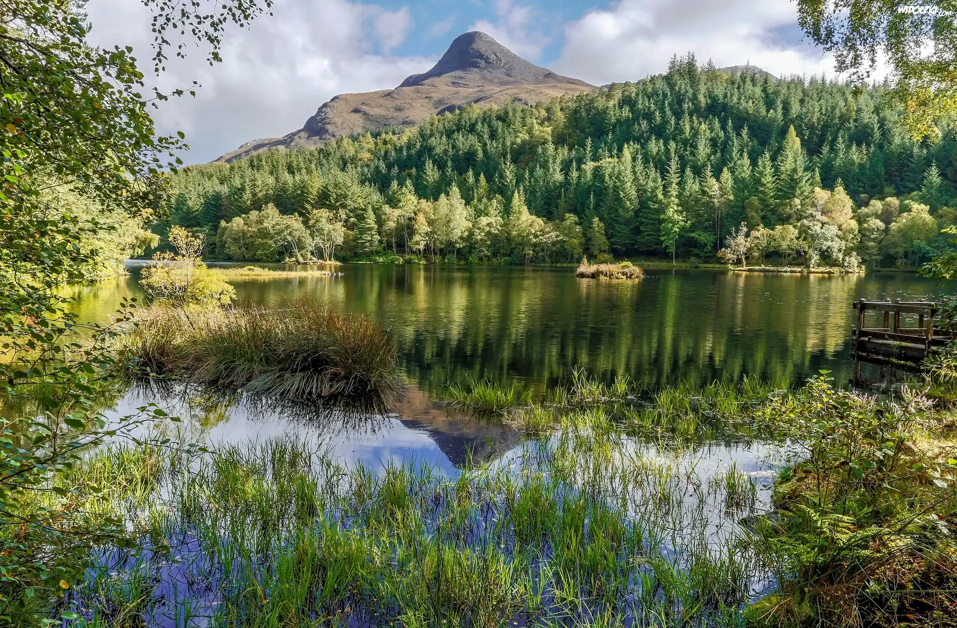 Zdjęcia, Rzeka, Góra, Drzewa, Pomost, Odbicie