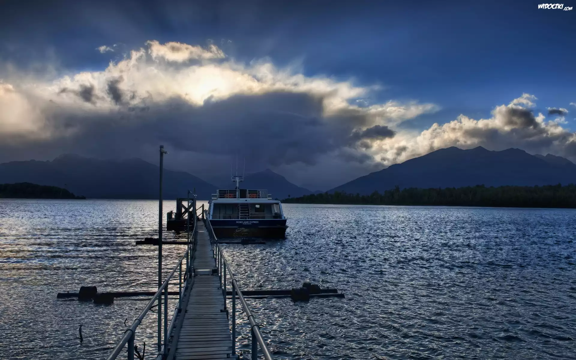 Zdjęcia, Rzeka, Góry, Jacht, Pomost, Chmury