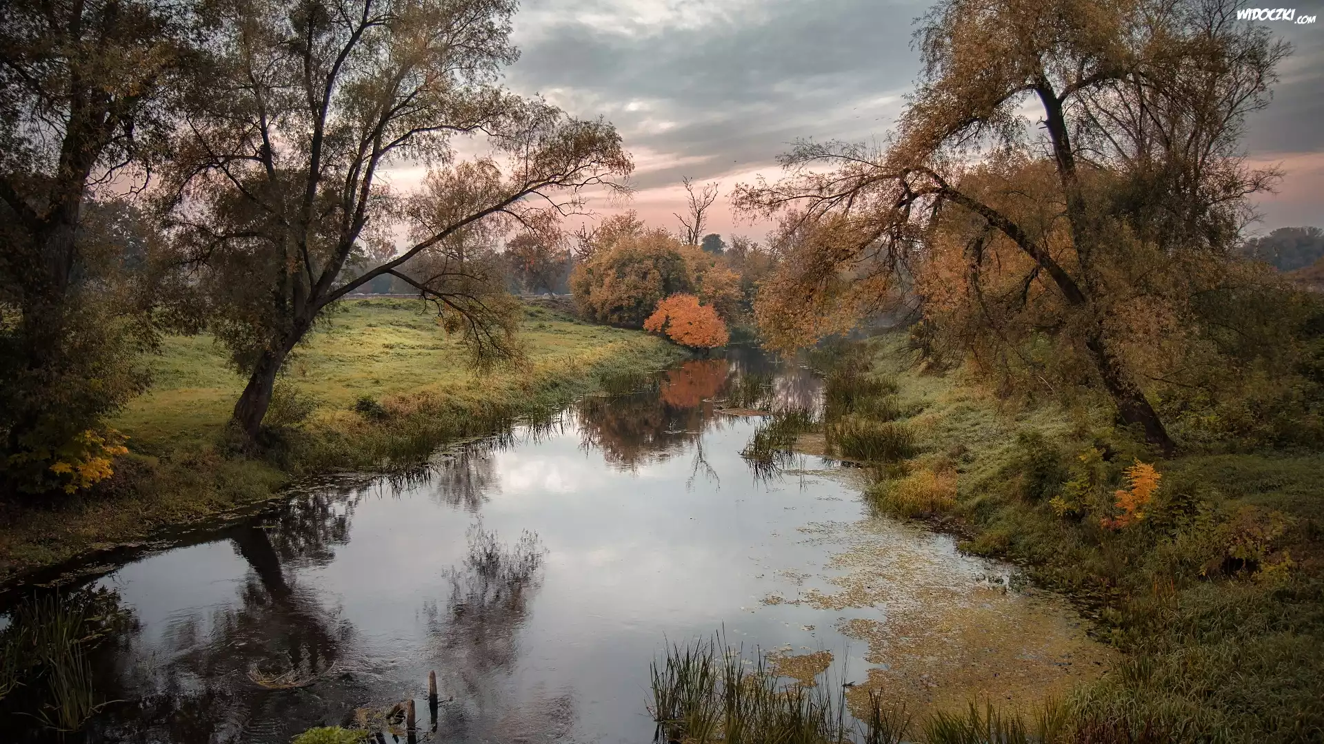 Zdjęcia, Rzeka, Drzewa, Krzewy, Pożółkłe, Rośliny