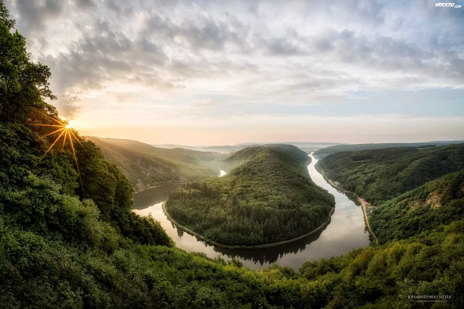 Zdjęcia, Rzeka, Lasy, Promienie słońca