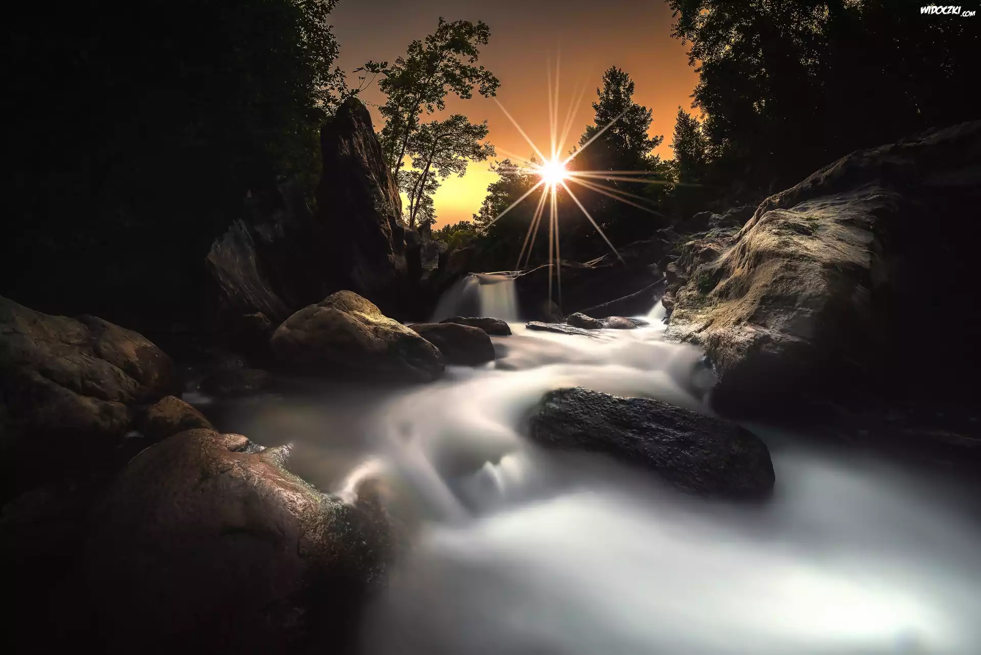 Zdjęcia, Rzeka, Skały, Promienie Słońca