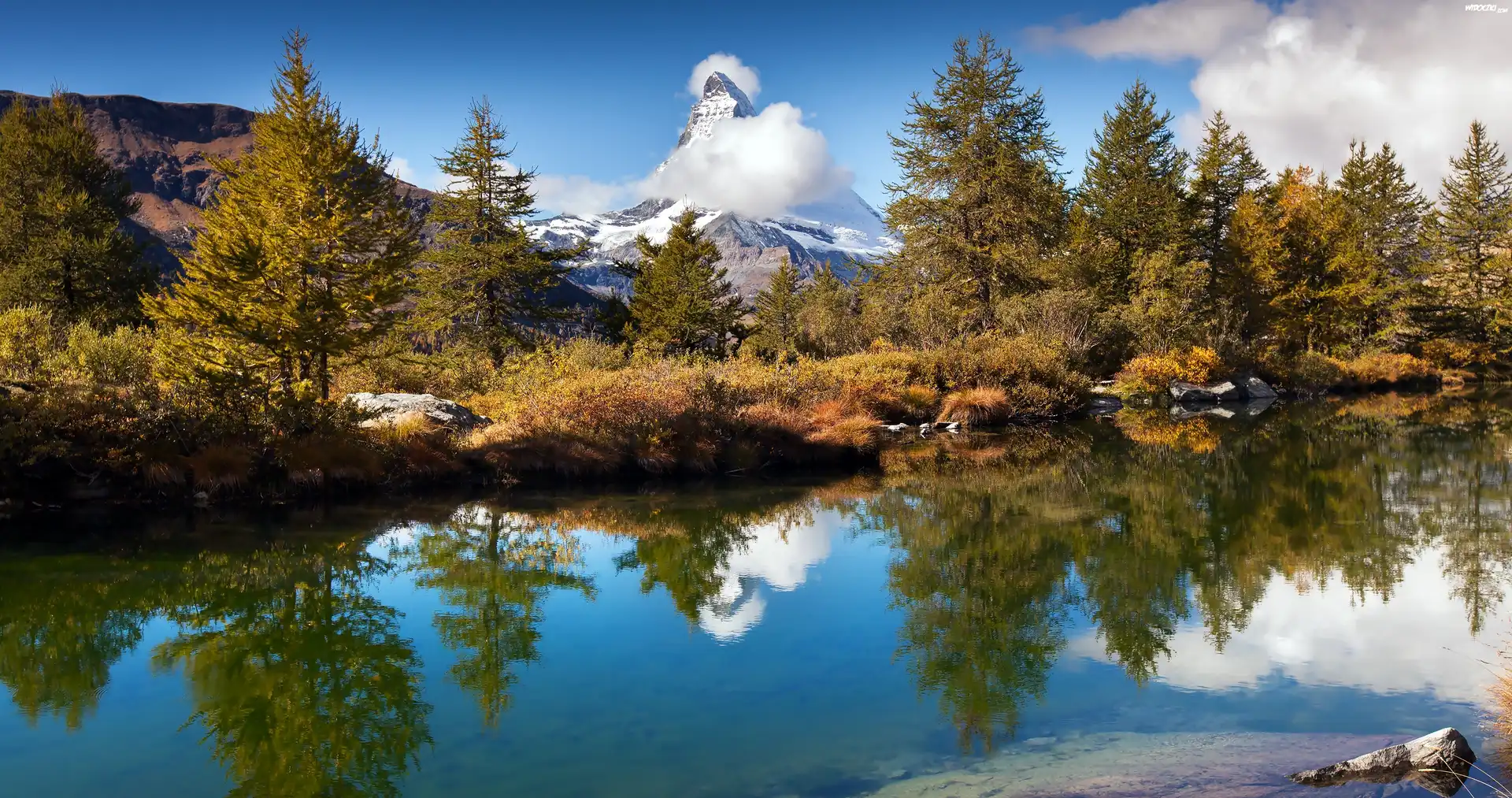 Rzeka, Góry, Drzewa, Roślinność, Odbicie