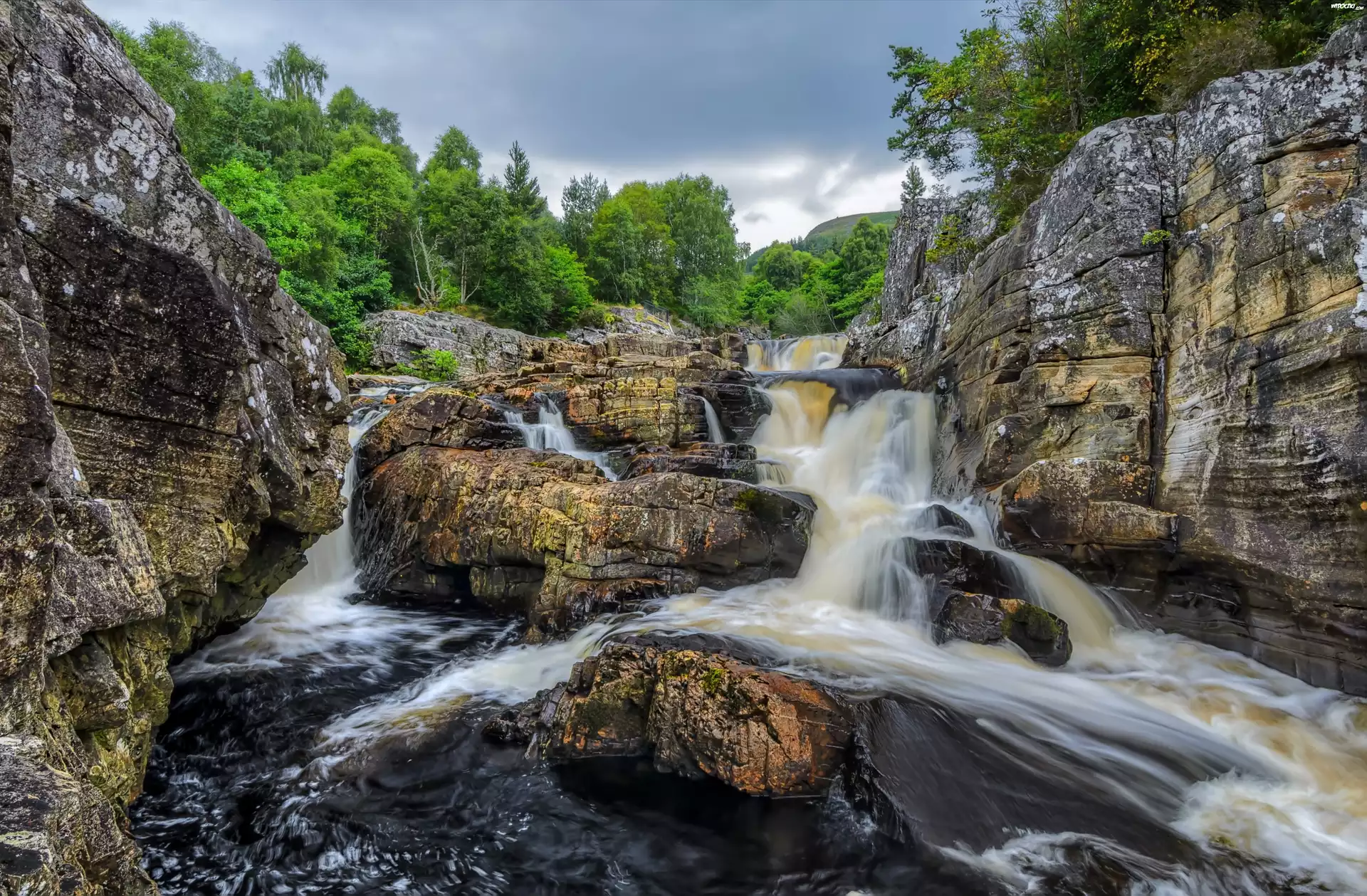 Zdjęcia, Rzeka, Wodospad, Skały, Drzewa