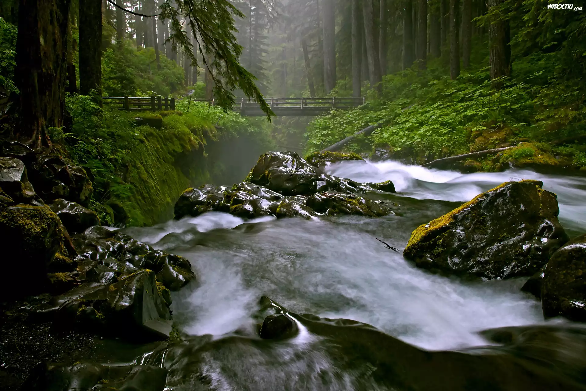 Zdjęcia, Rzeka, Wystające, Skały, Mostek