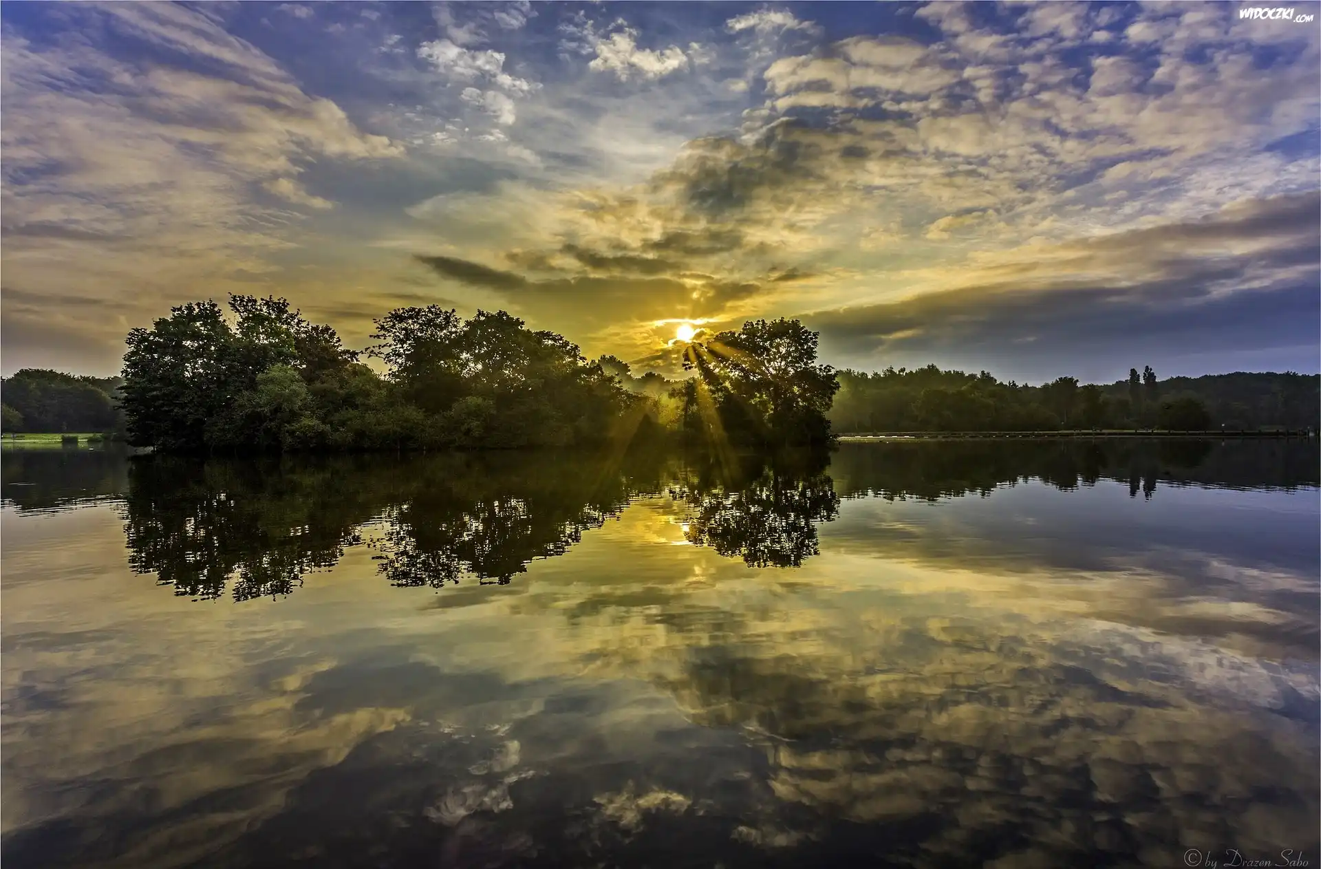 Zdjęcia, Rzeka, Drzewa, Promienie, Słońca, Odbicie