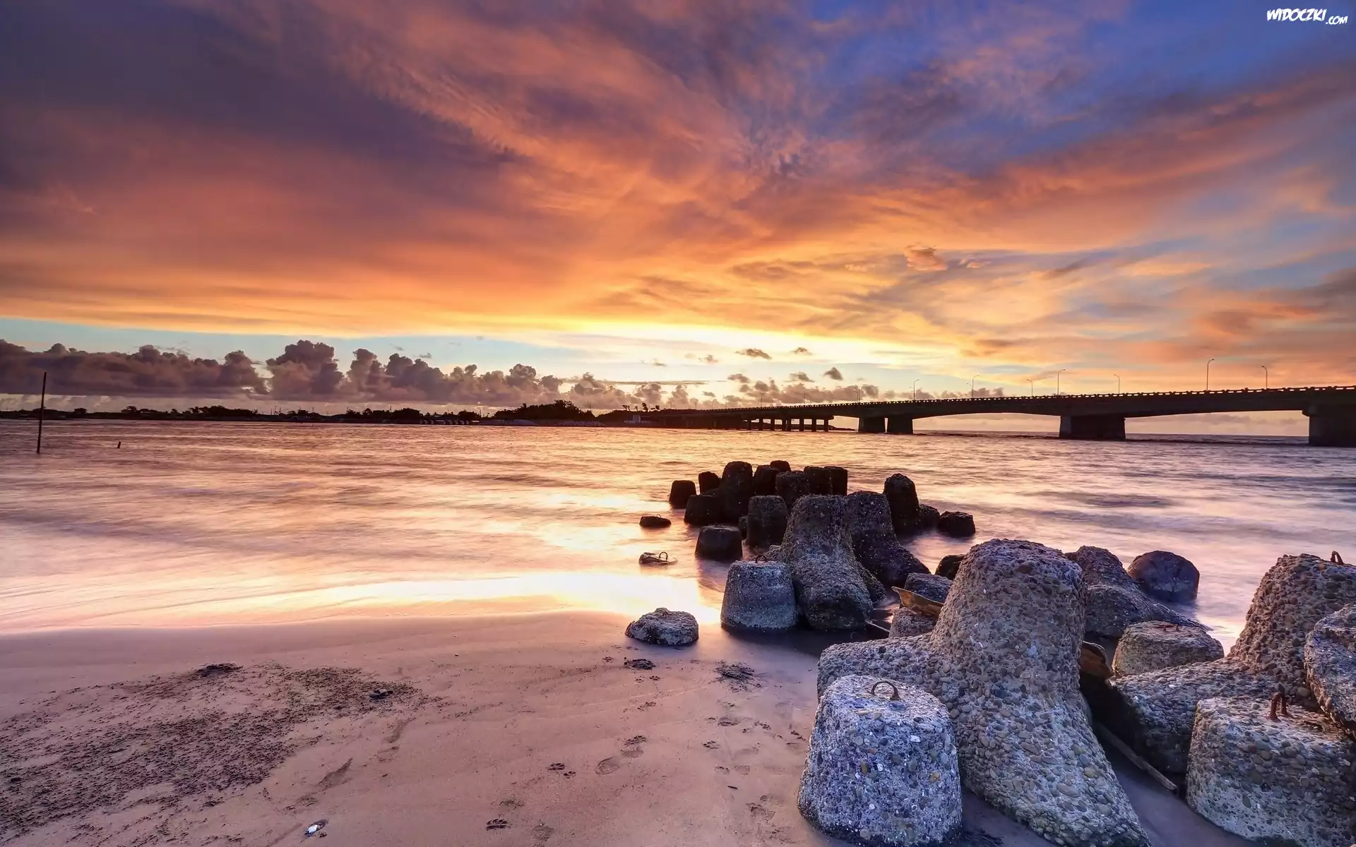 Zdjęcia, Rzeka, Kamienie, Wschód, Słońca, Most