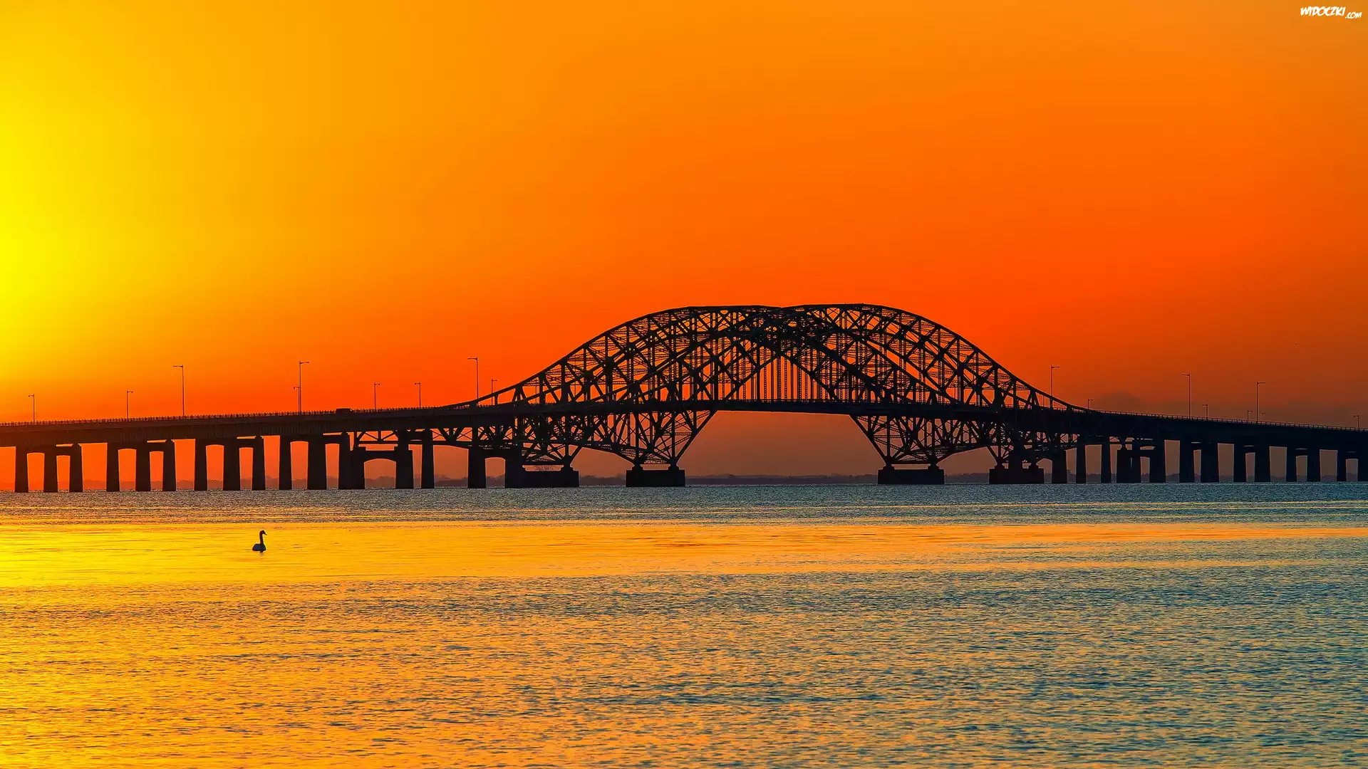 Zdjęcia, Rzeka, Zachód, Słońca, Most