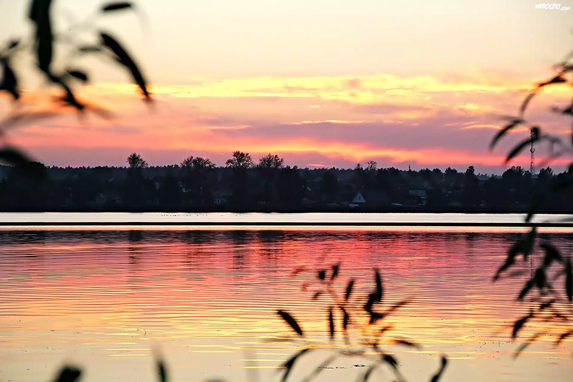 Zdjęcia, Rzeka, Wieś, Zachód Słońca, Odbicie