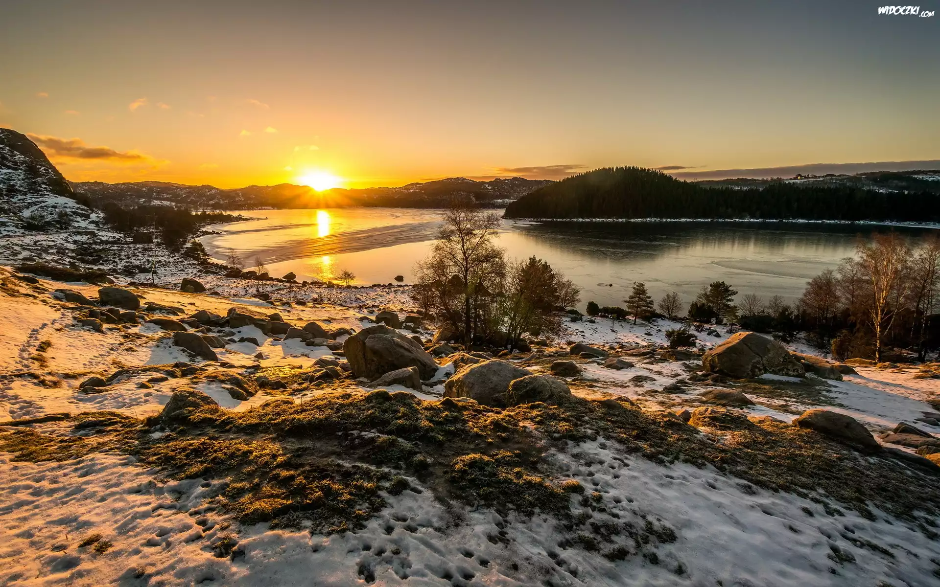 Zdjęcia, Rzeka, Zachodzące, Słońce, Zima