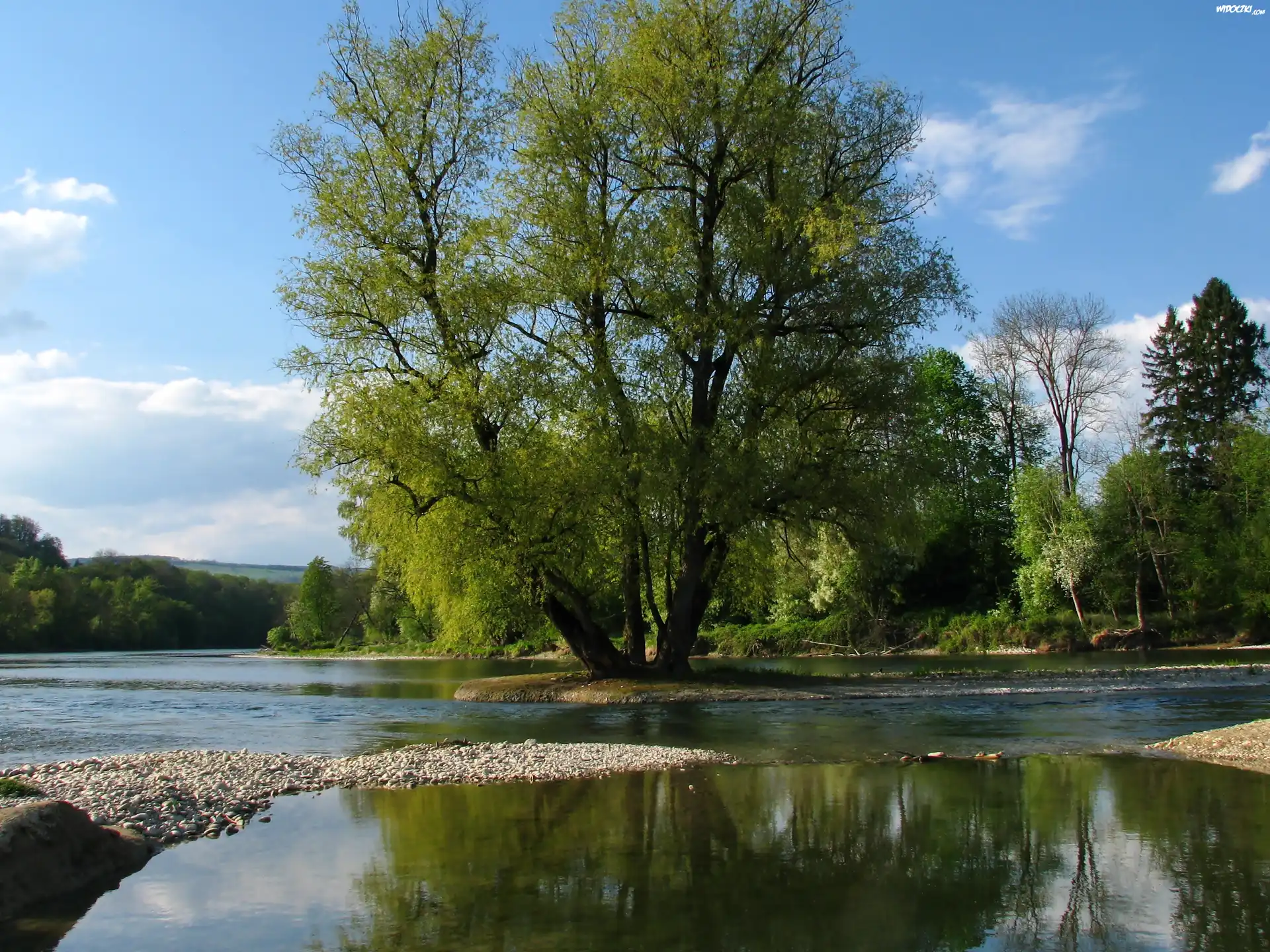 Rzeka, Aare, Szwajcaria, Drzewa