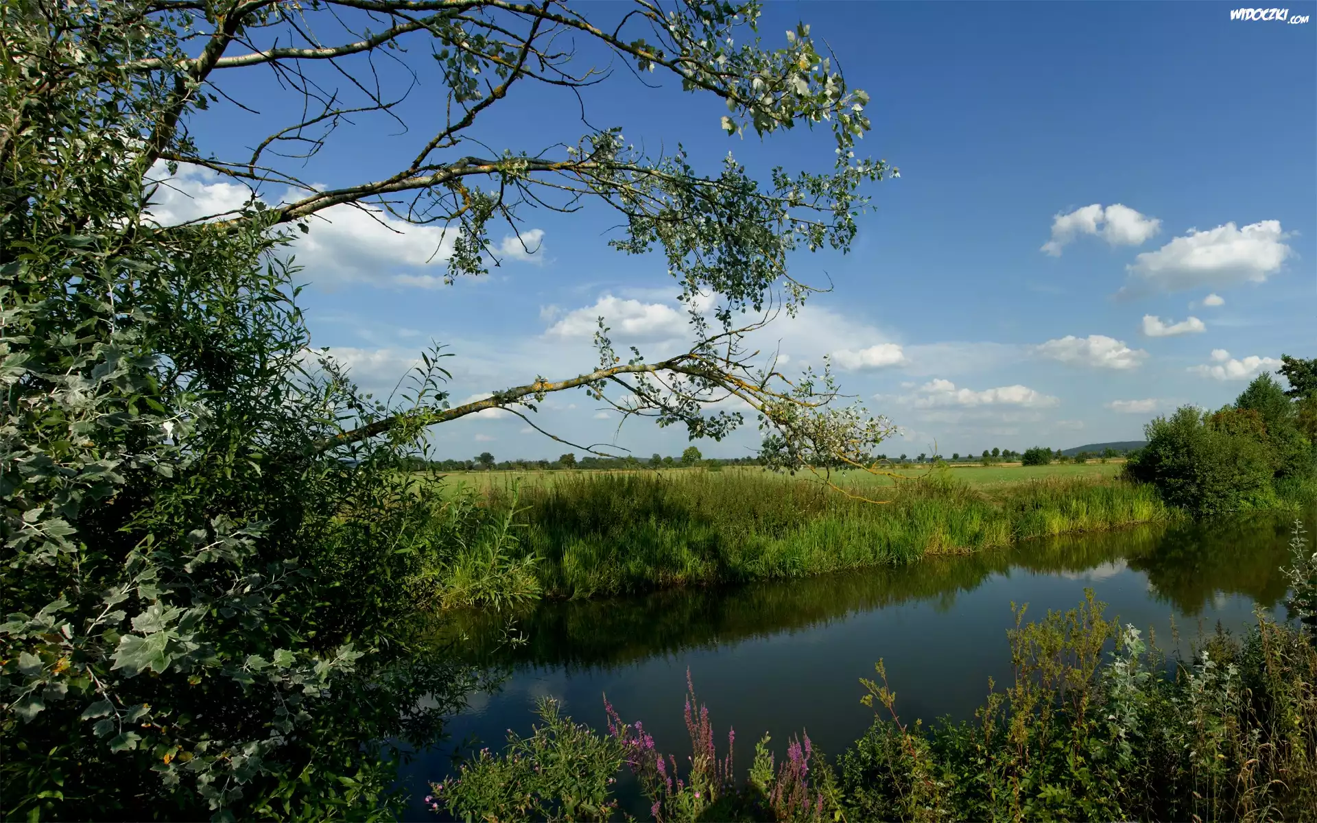 Zdj臋cia, Rzeka, Drzewa, Trawy, Niebo