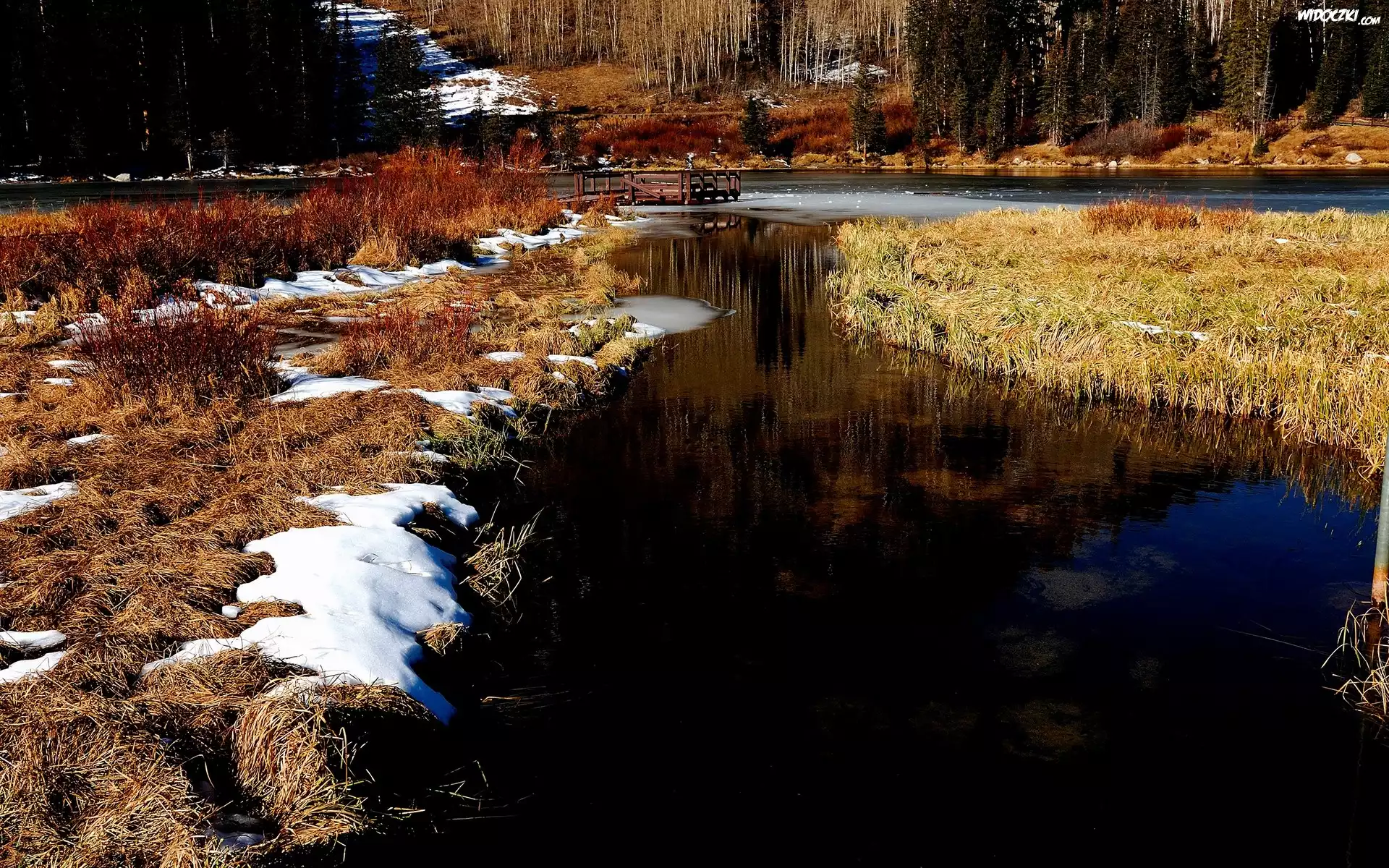 Zdjęcia, Rzeka, Mostek, Trawy, Las