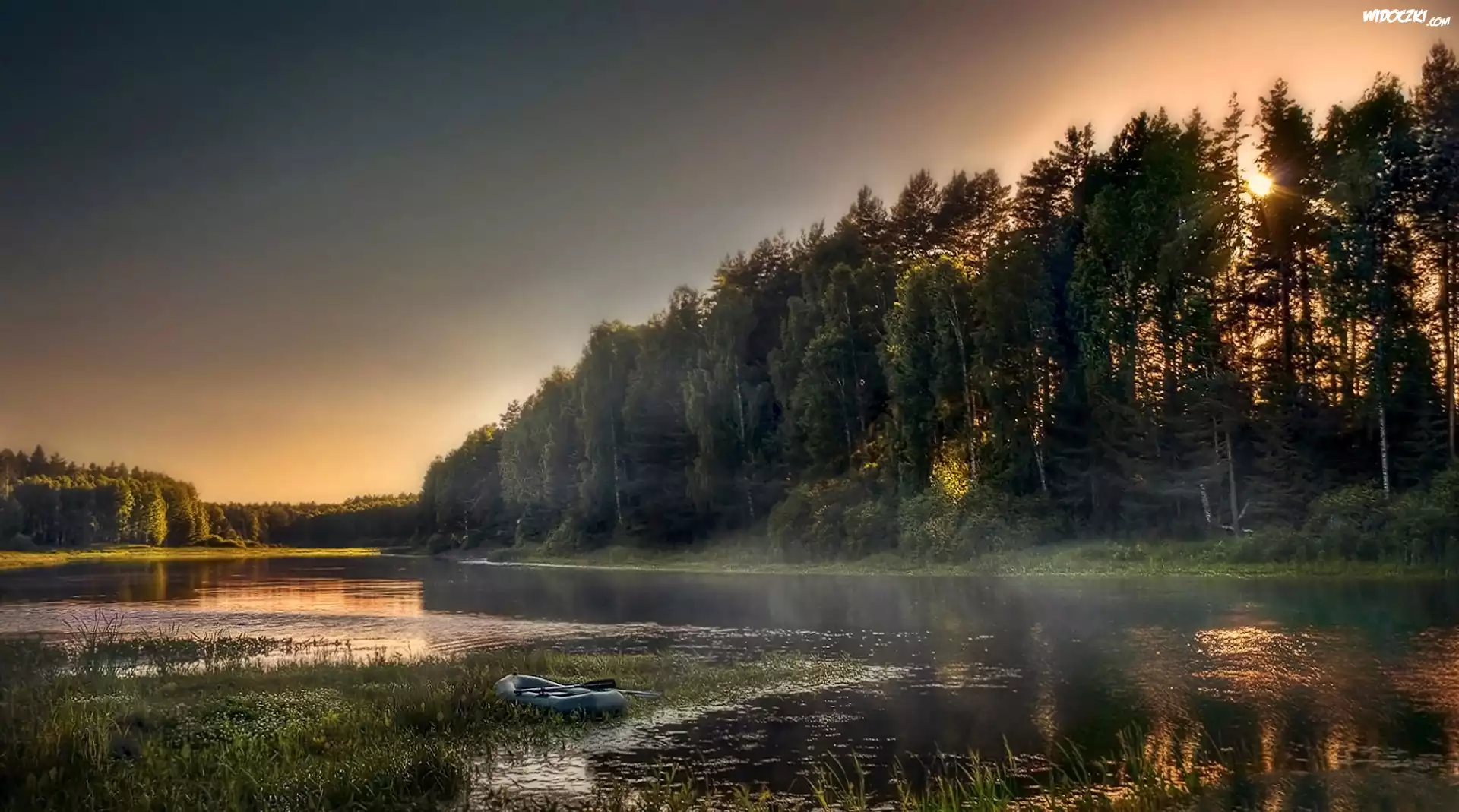 Zdjęcia, Rzeka, Las, Przebijające, Światło, Mgła