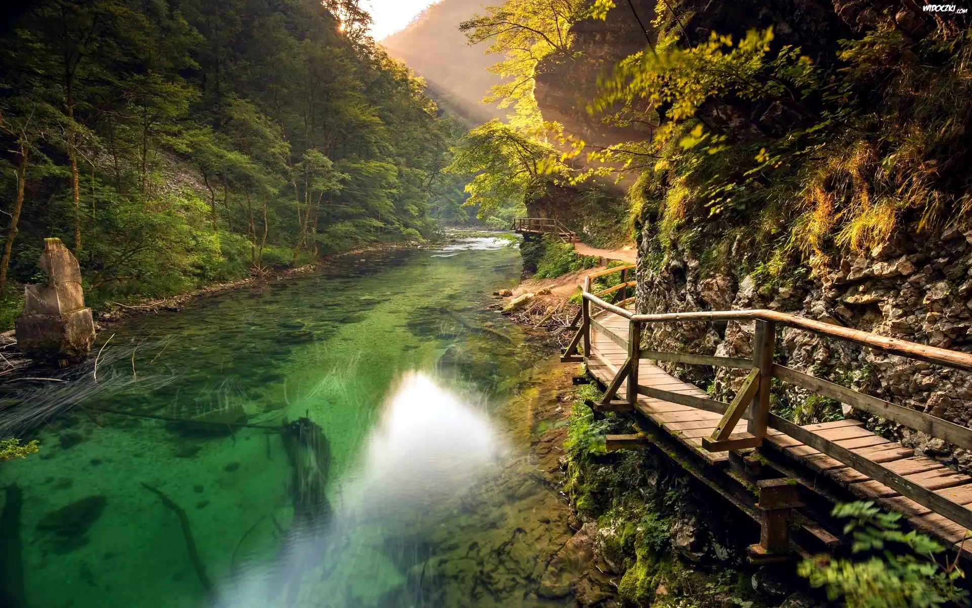 Zdjęcia, Rzeka, Las, Przejście, Przebijające Światło, Słowenia