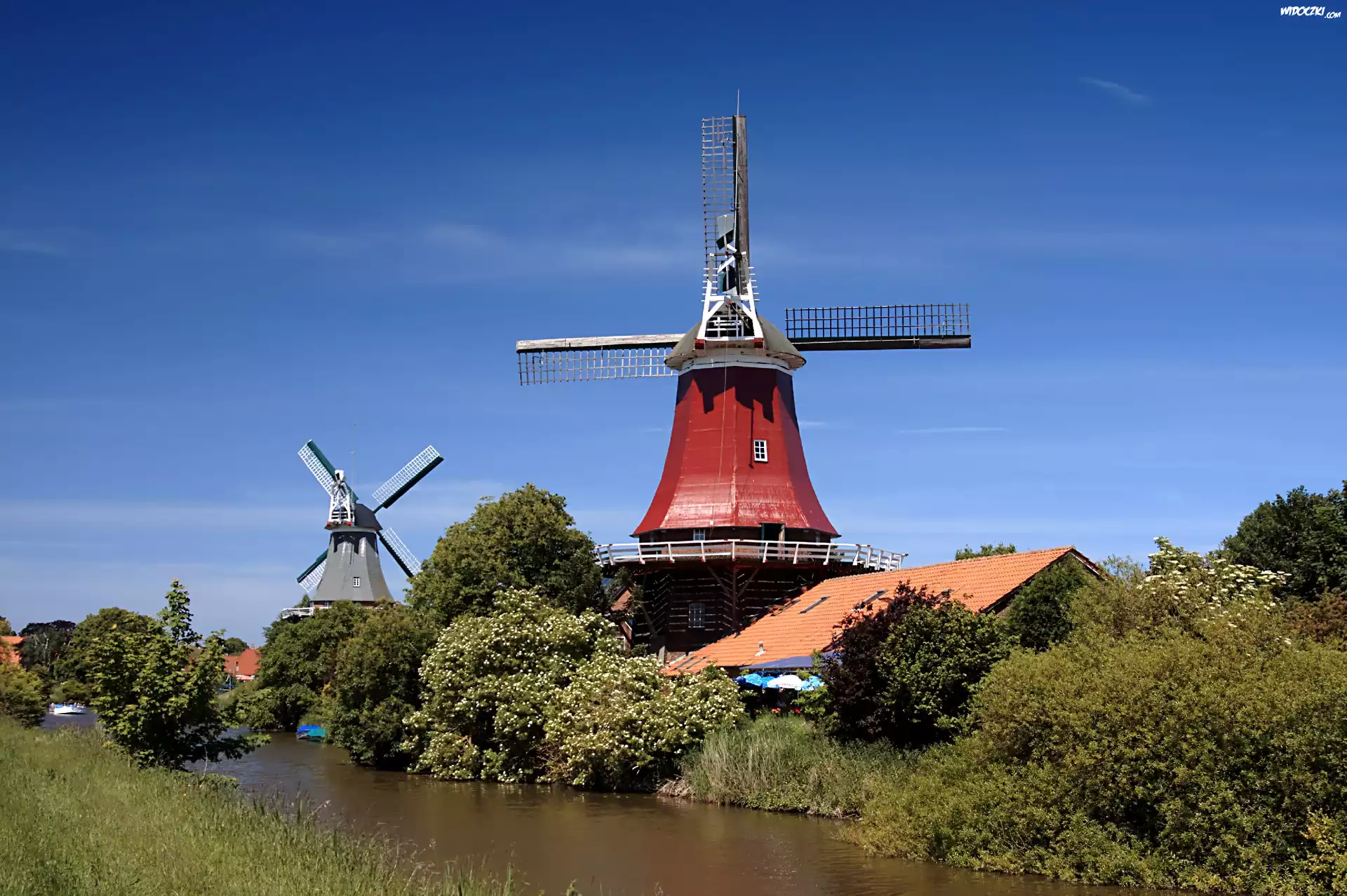 Zdj臋cia, Wiatraki, Rzeka, Drzewa