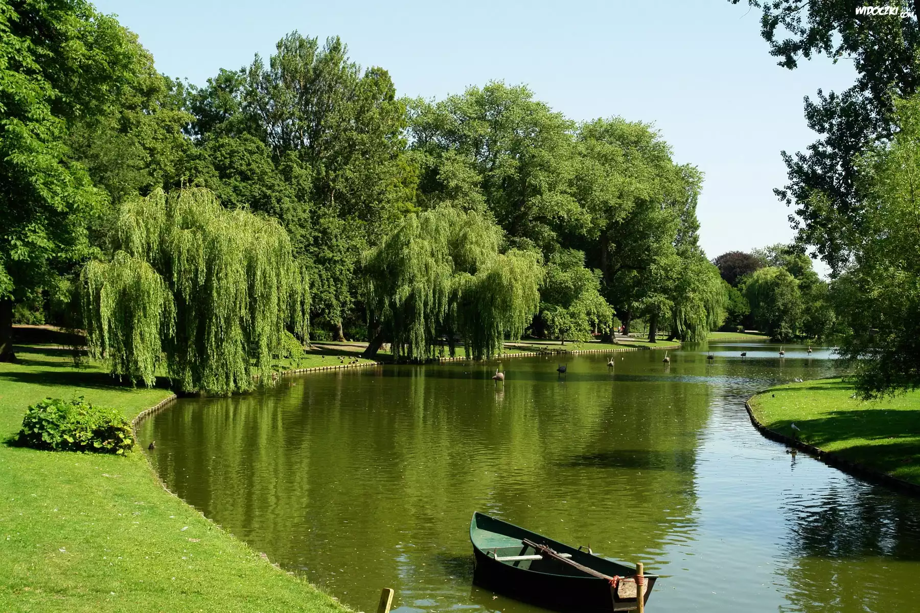 Zdjęcia, Rzeka, Drzewa, Wierzby, Łódka