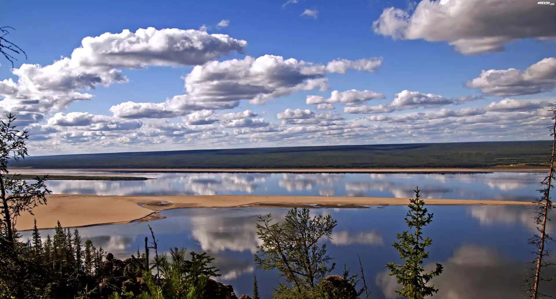 Zdjęcia, Rzeka, Chmury, Wierzchołki, Drzew