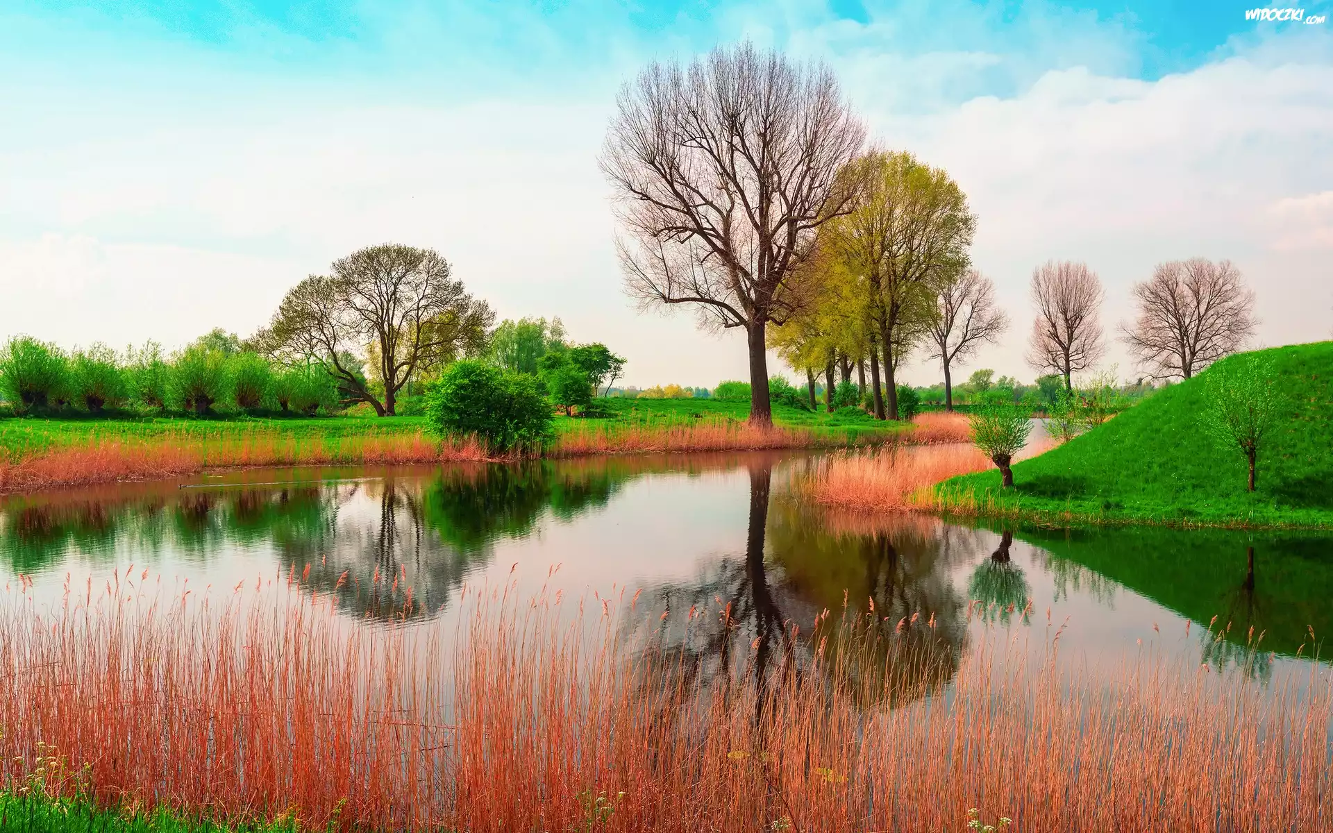 Rzeka, Trawy, Łąki, Drzewa, Wiosna, Anglia