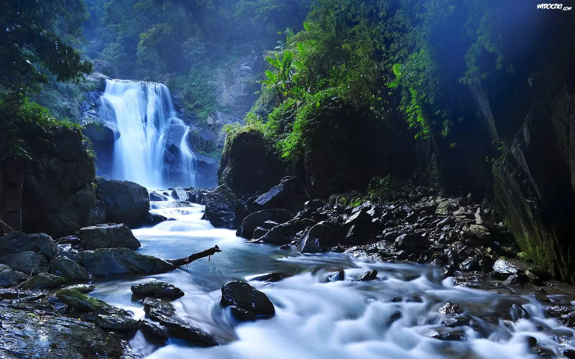 Wodospad zimą Wodospad w lesie Góra, Skały Rzeka, Las, Domek Góry, Rzeka, Lasy Wodospad Rzeka Czerwone, Domki, Wąska, Rzeczka Wodospad, Chmury Szeroki Wodospad Zima, Droga, Las, Skały Morze, Skała, Plaża, Góra Palmy, Rzeka, Most Morze, Skała