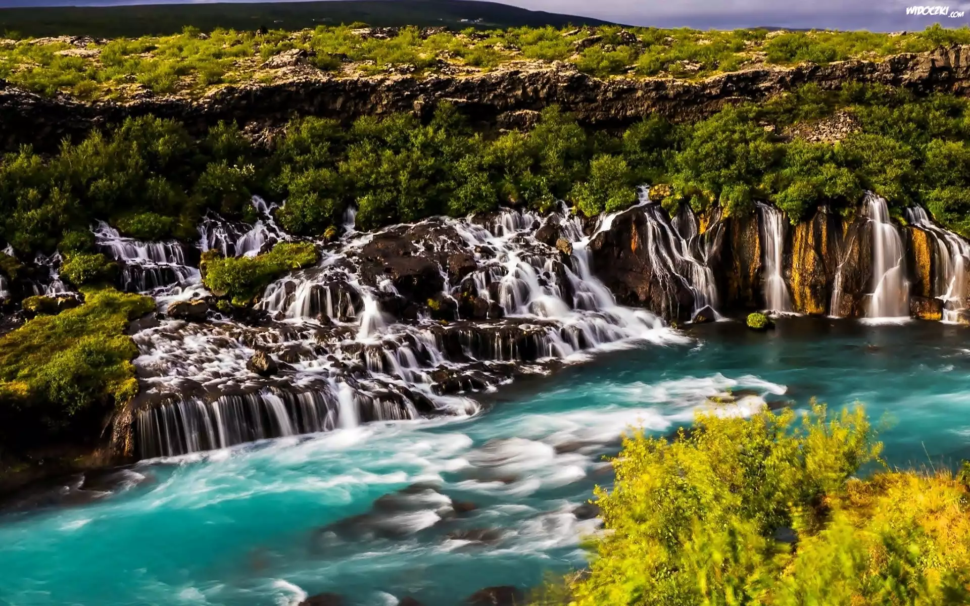 Zdjęcia, Wodospady, Rzeka, Roślinność