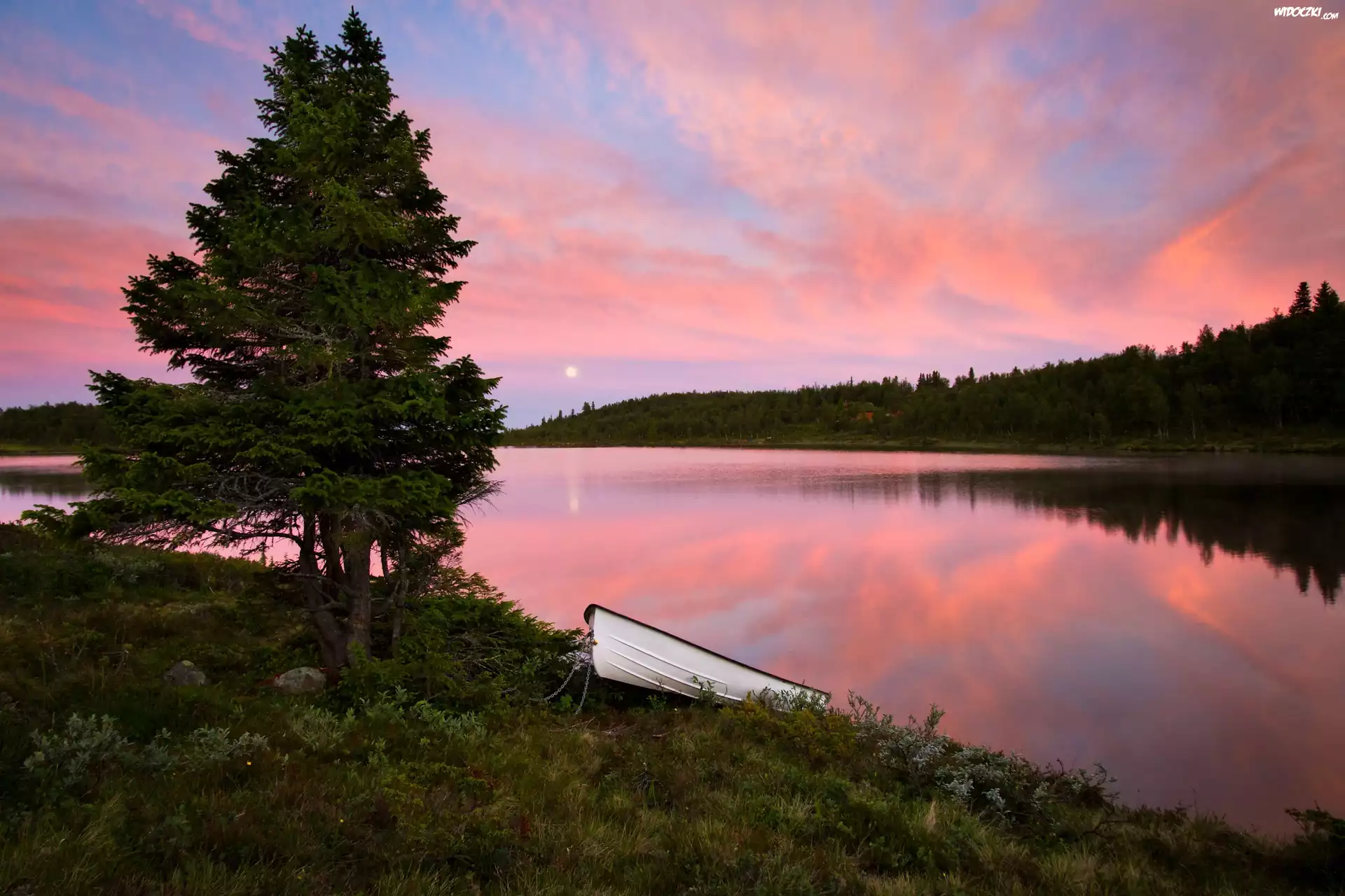Zdjęcia, Rzeka, Łódz, Lasy, Wschód, Słońca