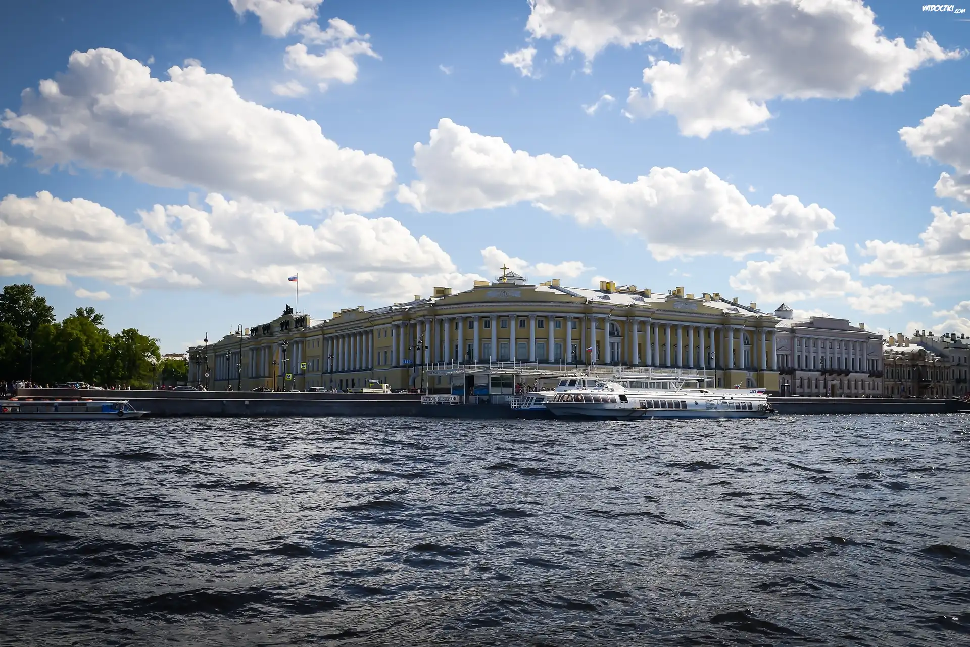 Rzeka, Chmury, Statki, Wycieczkowe, Budynek