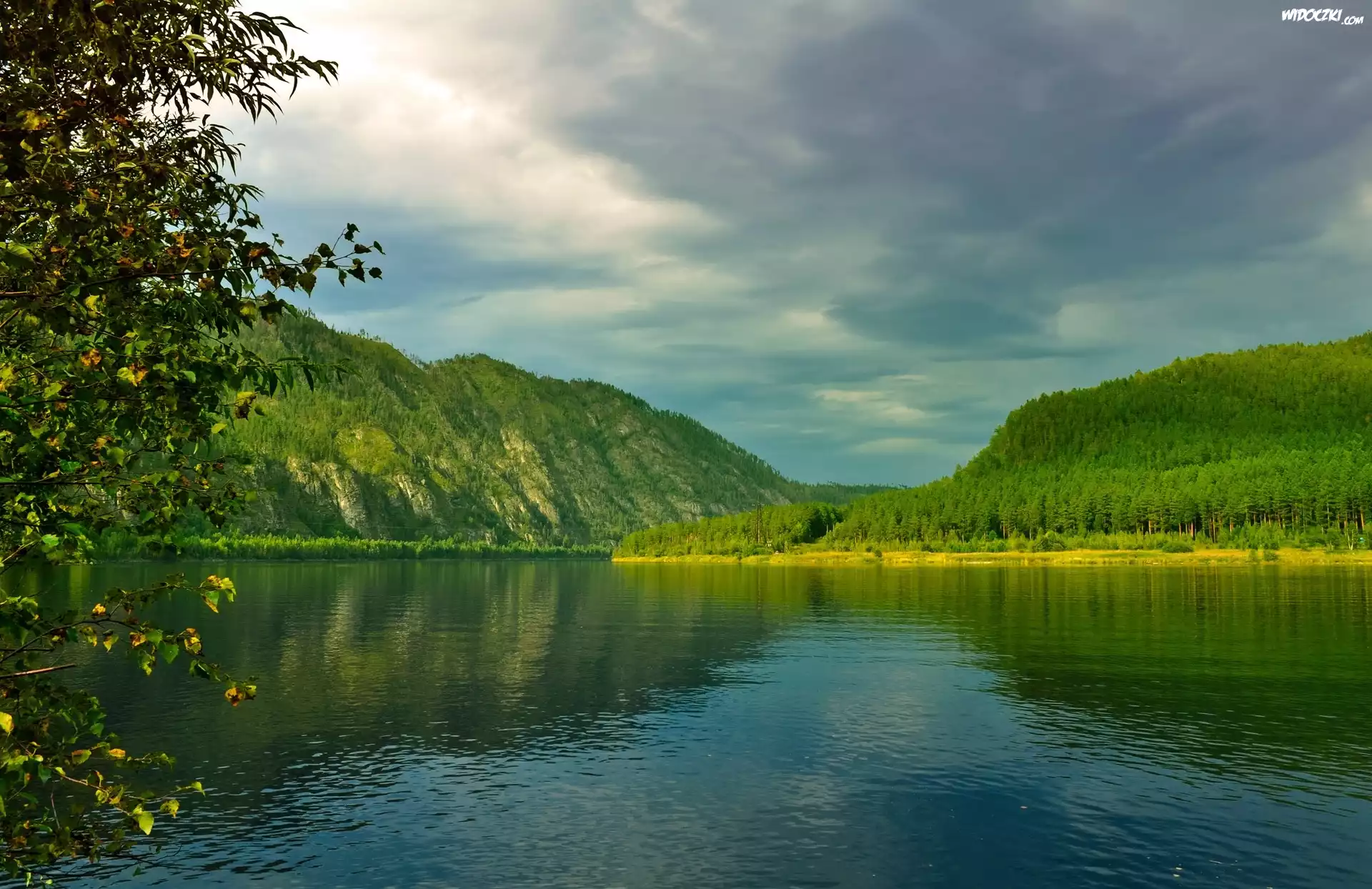 Zdjęcia, Rzeka, Drzewa, Wzgórza, Lasy