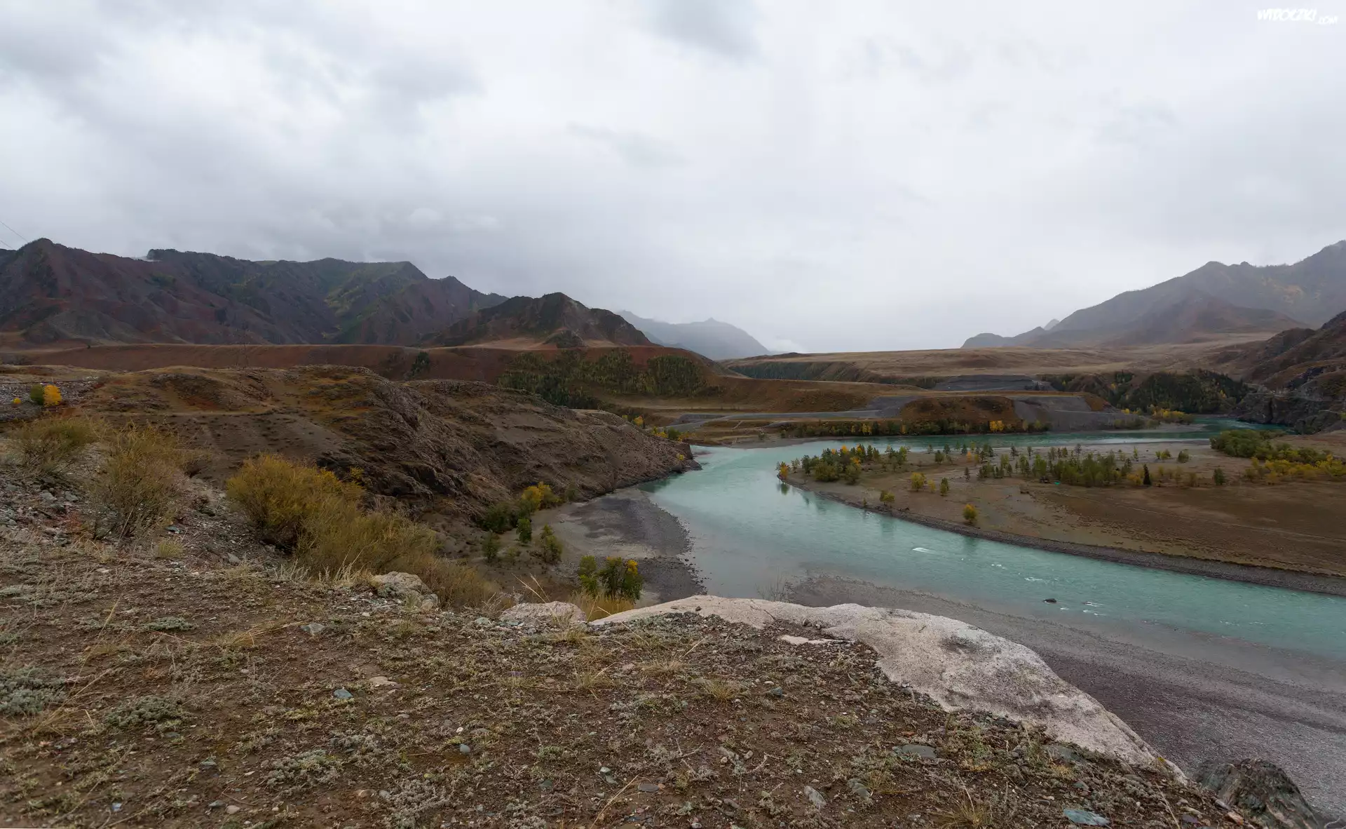 Zdjęcia, Rzeka, Góry, Wzgórza, Rośliny
