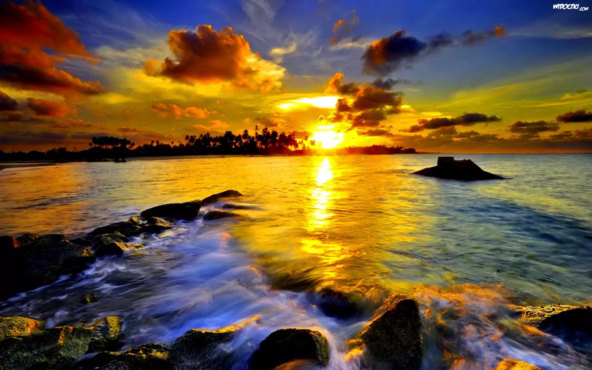 Zdjęcia, Rzeka, Chmury, Zachód Słońca