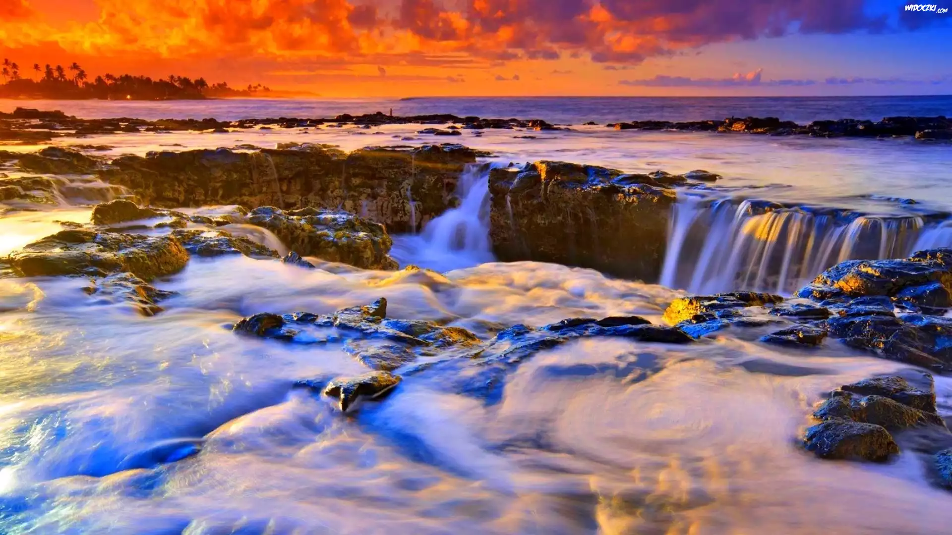 Zdjęcia, Rzeka, Kaskada, Zachód Słońca