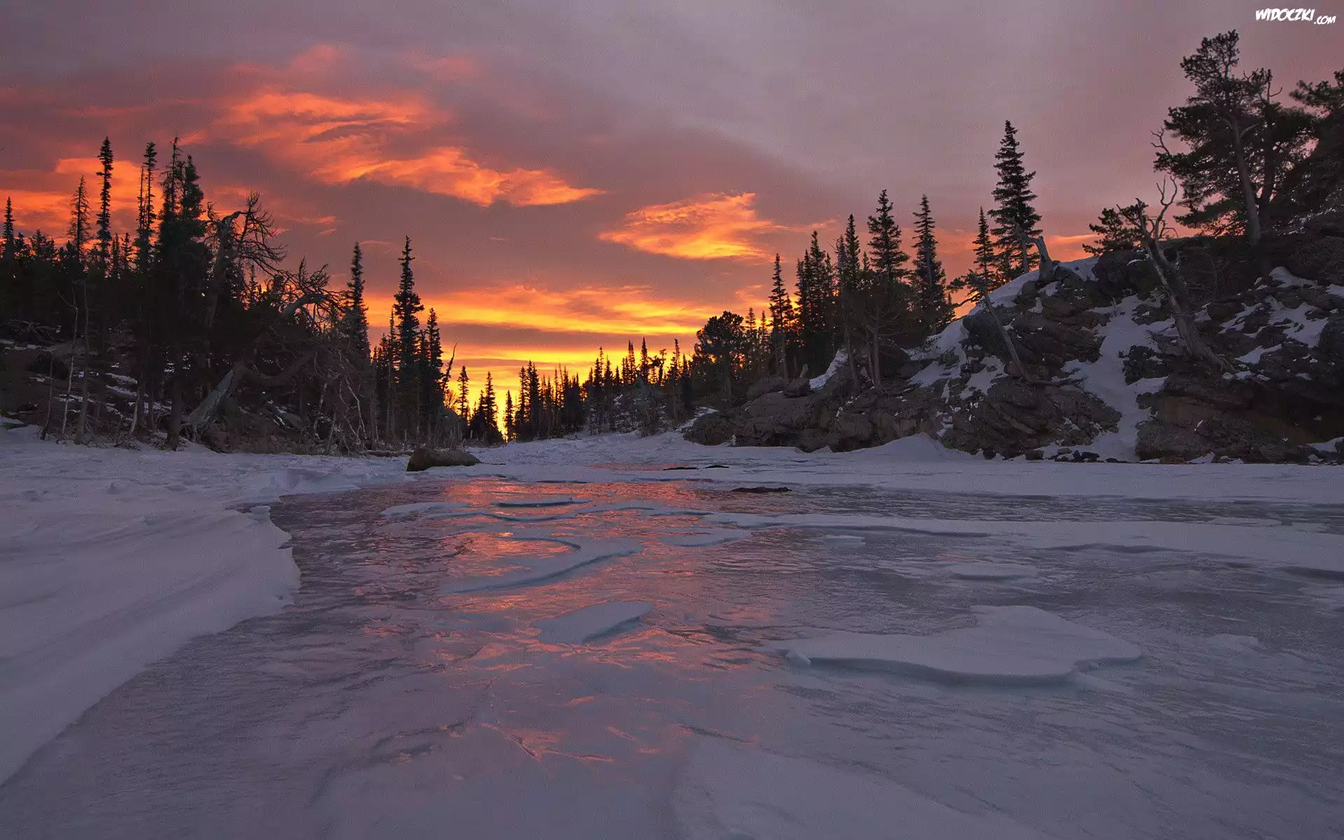 Zdjęcia, Rzeka, Kra, Las, Zachód, Słońca