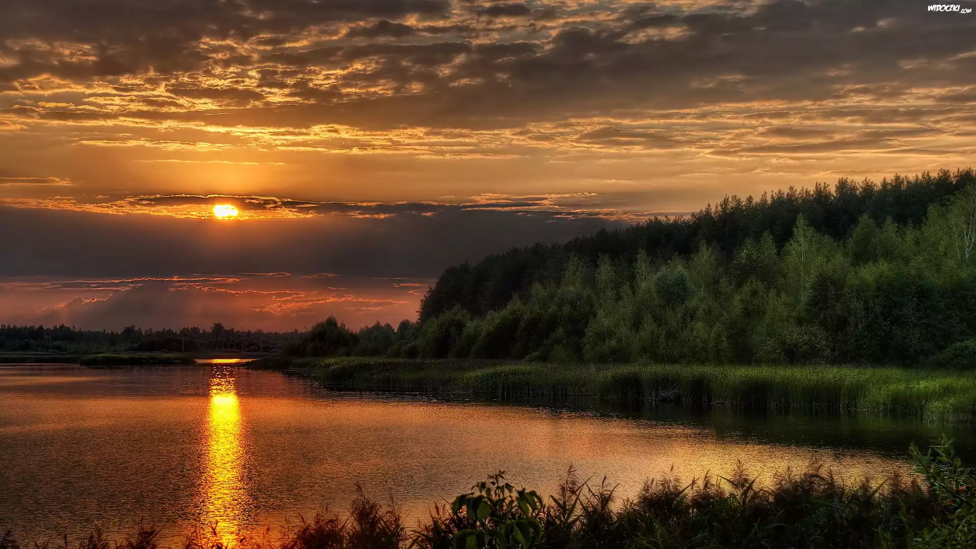 Zdjęcia, Rzeka, Las, Zachód, Słońca